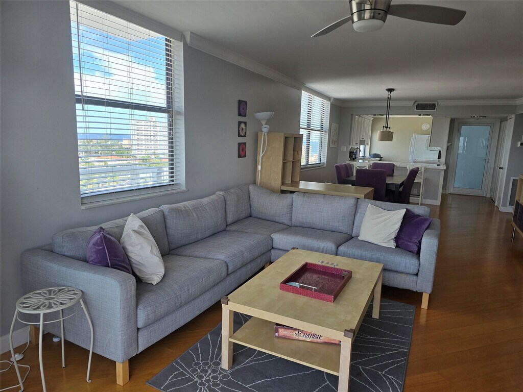 Bright and Airy CORNER Unit with large high impact windows. Great Intracoastal and oceans views with an easy walk to the beach. Heated swimming pool,barbecue grill,fitness room,club room with a kitchen. Unit comes with one assigned covered parking. Building located close to sandy beaches,restaurants,and shops. Safe,secure,quiet location. All ages! Move in ready! Fully furnished. Call listing agent.Easy to show. MLS ID F10523202