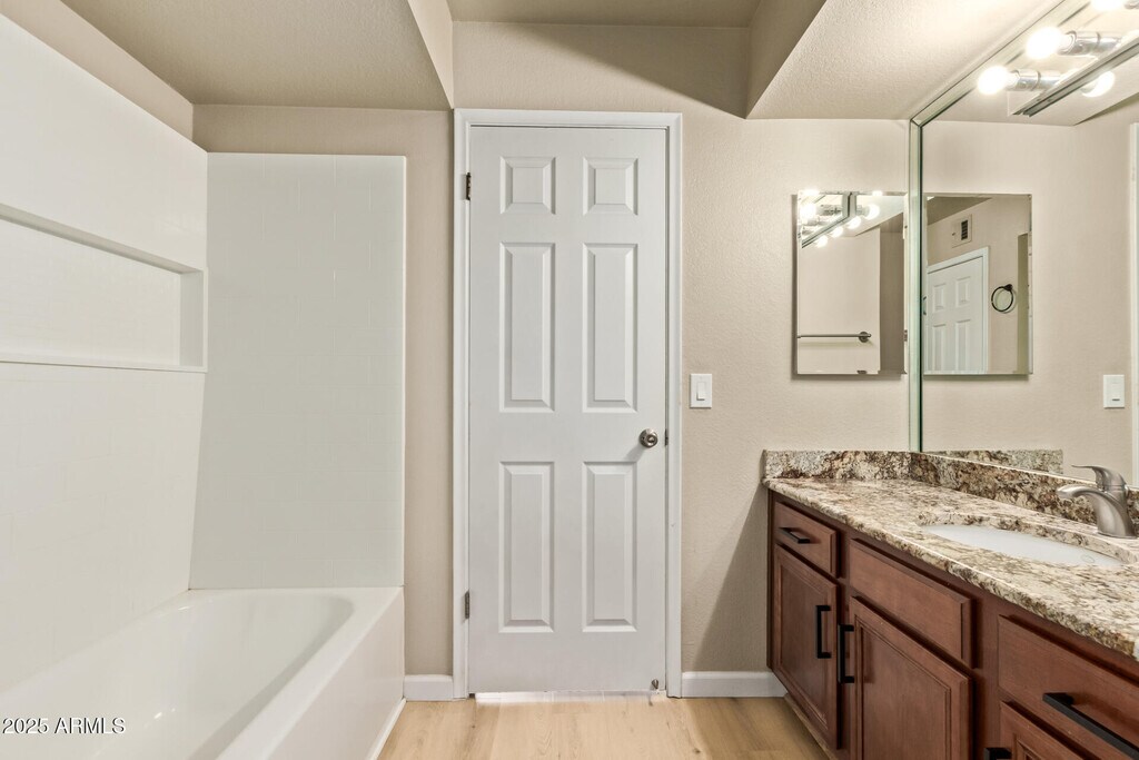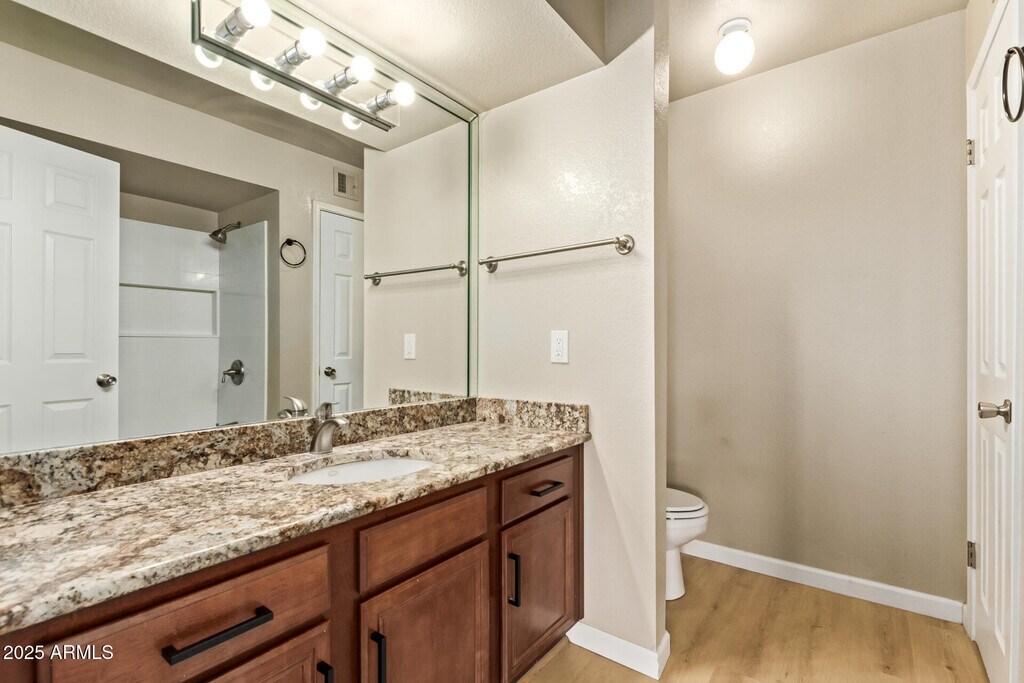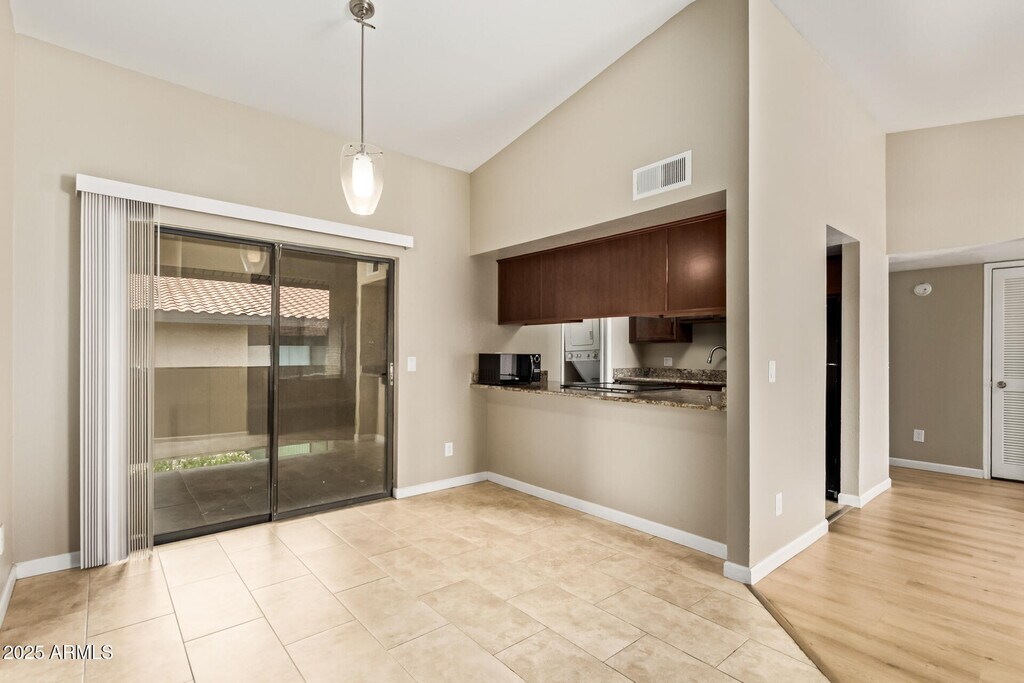 Gray tone paint, water proof flooring with a contemporary gray and white color scheme, oversized baseboards, throughout this condo. Pass through and bar seating from kitchen to dining area. All appliances are included in the rent, even a stack washer and dryer. Plenty of closet space inside, huge master closet, second bedroom has a 3 door closet, as well as a good sized storage closet off of the balcony. Two assigned parking spots are with each unit, one of which is covered. Conveniently located in Tempe, close to highway access and schools. Well maintained community areas including pool and spa, fitness center as well as BBQ and seating areas. Pet friendly, please call to verify any breed restrictions. Schedule a showing today with Western Vistas by calling .