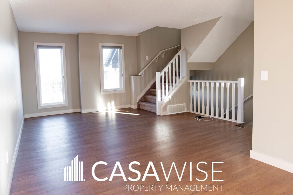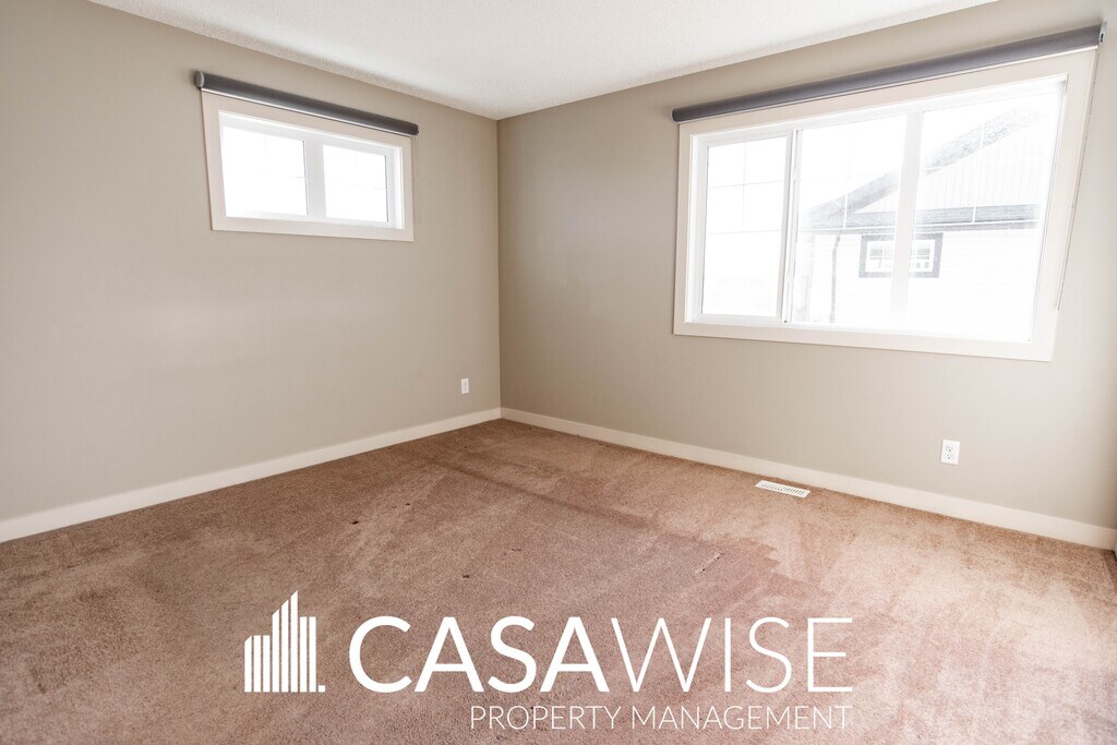 BEAUTIFUL Dual Master Bedroom Townhouse in Callaghan Landing! Enjoy living in this 1410 sq ft end unit townhouse in the very desirable neighborhood of Callaghan! Lake view in the front and park view in the back! ? Open-concept living and dining room. ? Modern kitchen with tile backsplash and stainless steel appliances. ? Pantry for extra storage. ? Eating bar overlooking the dining area. ? One master bedrooms with a walk-in closet and ensuite bathroom. ? Second master bedroom with two large closets and ensuite bathroom. ? Bonus flex space — perfect for a home office. ? In-suite laundry conveniently located upstairs. ? South/West exposure for all-day natural sunlight. ? Balcony to enjoy warm summer days. ? Laminate flooring and cozy carpet throughout the unit. ? Double attached garage for added convenience. Building Amenities: ? Snow removal and exterior landscaping are taken care by the complex management. ? Visitor parking. Conveniently located with a bus stop right out front! Enjoy easy access to parks, walking paths, Heritage Valley Town Center Area, South Edmonton Common, the International Airport, and the LRT. Major routes including 41 Avenue, Highway 2, Ellerslie Road, and the Anthony Henday are just minutes away. Plus, several schools are nearby, making it ideal for families. Utilities are tenant's responsibility. One small pet is negotiable with a fee of $50/month. Pet approval is at the time of the application and not guaranteed thereafter. No Smoking. Professionally managed by Casawise Property Management Only applications received through our site will be processed: If interested, please provide us with your name, phone number, available times for viewings and a little background about you (when do you need the unit for, how many people would be living in the unit, etc.). Thank you!