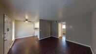 Cozy, warm, inviting one bed with air conditioning, hard surface flooring, white shaker cabinets, black appliance package, walk in closets, tiled showers, bike rack, close to schools and major roads. On site laundry available. Call for a preview today!. Apartamentos cómodos y cálidos de una habitación con aire acondicionado, suelos de madera, armarios blancos tipo shaker, paquete de electrodomésticos negros, vestidores grandes , duchas con azulejos, soporte para bicicletas, cerca de escuelas y carreteras principales. LavanderÃa disponible en la propiedad. ¡Llámanos para mas información!