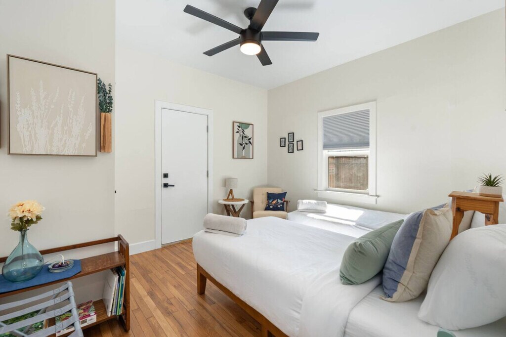 Chic 918 sq. ft. home in the Garfield Historic District of Downtown Phoenix with a casita! Modern updates meet cozy style with ample outdoor areas, two workspaces, and vibrant design. The property features a shared backyard, yet offers your own private space with fire pits, BBQ, bikes to use, and great game areas. Walk to Roosevelt Row, Phoenix Art Museum, Chase Field, and more! This exceptional three-bedroom retreat in the Garfield Historic District of Downtown Phoenix is perfect for families, business travelers, couples, or anyone looking for a stylish city escape. Inside, modern updates blend seamlessly with historic charm, offering a cozy and vibrant home base in the heart of the city. The living area features a decorative brick fireplace, smart TV, and dedicated workspace, while the fully equipped kitchen and updated bathrooms provide all the comforts of home. The spacious bedrooms include plush king-size beds with fresh linens, ideal for restful nights, as well as two twins. Dogs and cats are allowed with approval and a pet fee. Please ensure you are cleaning up after your pets, as additional fines may occur for excessive clean-up. Step outside and enjoy the private fully fenced, gated property with a shared backyard designed for relaxation and fun. Imagine sipping your favorite drink by the fire pit under twinkling string lights, lounging in vibrant outdoor seating, or playing games in the spacious yard. The location couldn’t be better—you’ll be within walking distance to Roosevelt Row’s art scene, the Phoenix Art Museum, and Chase Field, plus some of the city’s top restaurants and coffee shops. A short drive brings you to the Phoenix Zoo, Desert Botanical Garden, and other cultural hotspots. Guests will have access to the front property as well as the casita. Guests can contact the trusted partner with any questions. Important house rules include no additional guests other than the ones staying, with exceptions made upon arrangement. Violating this will incur a $200 charge per person per day and possible cancellation of your booking. Any excessive cleaning required is $50 per hour. Tampering with security equipment is grounds for immediate cancellation of the booking. No smoking, vaping, or drug use is allowed, with a zero-tolerance policy. Violations will result in a $500 fine. No parties are allowed, with no exceptions, and business events are permitted. Noise complaints or police involvement could lead to being asked to leave with no refund. Late checkouts can be arranged for an additional $100 fee and must be requested 24-48 hours in advance. Emergencies should be communicated as soon as possible. A $150 charge applies to guests still on the property after check-out time to respect proper cleaning time for the arrival of the next guests. The cleaning crew will enter the home at 11 AM to clean. Anyone still in the house two hours after checkout will then pay that day's base rate without discounts, which does not grant access to the property for the day. If a refund to another guest is necessary due to overstaying, reimbursement for any refunds given is required. Damage resulting in blocking days off in the calendar will result in paying the day's rate for however many days it took to restore the property. Be respectful of the neighbors. The living area features a decorative brick fireplace, smart TV, and dedicated workspace, while the fully equipped kitchen and updated bathrooms provide all the comforts of home. [SI]