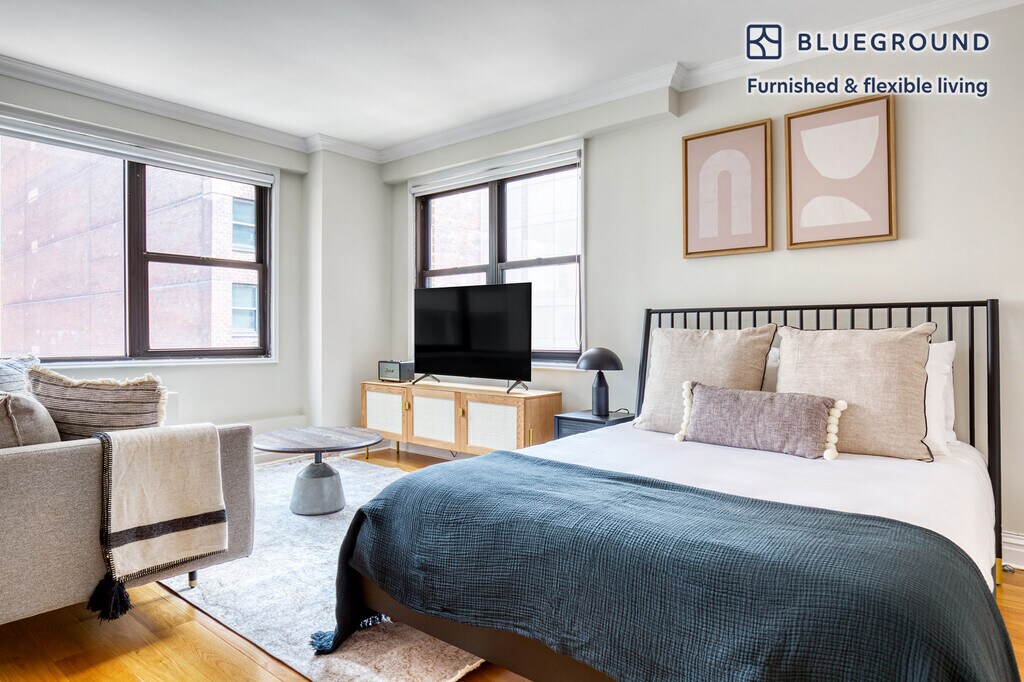 Discover the best of New York, with this studio apartment in Kips Bay with high floor views over the city. It’ll be easy to simply show up and start living in this furnished apartment with its fully equipped kitchen, living room, and our dedicated, on-the-ground support. (ID #NYC139) The advertised rate of $5,080/month is the lowest available price, based on a 11 month(s) and 29 day(s) stay with a move-in date of January 9, 2026. Rates vary depending on the duration of stay, season, and other parameters. For exact pricing and additional pricing components, please visit our website and enter your desired move-in and move-out dates. The rate is applicable when billed upfront; it can be higher if billed in multiple payments. Brokers are welcome to reach out. Were you looking for an unfurnished lease? Try Blueground instead and upgrade from unfurnished to furnished living: - Furnished at rates comparable to unfurnished - No setup or furniture costs - save thousands - Move-in ready - save time, just bring your suitcase Designed with you in mind Thoughtfully designed with bespoke finishes, modern furnishings, and a fully equipped kitchen, you’ll enjoy that “I’m home” feeling with this Blueground apartment. Whether you’re lounging in your cheery living room streaming the latest and greatest entertainment on the smart TV or premium wireless speaker, or getting some well-earned rest on the superior quality mattress with luxury linens, you’ll fall in love with everything this Kips Bay apartment has to offer. Sleeping arrangements Double Bed, 55in/140cm Amenities Building amenities unique to this studio apartment include an on-site: - Doorman - Dryer in building - Elevator - Washing machine in building - Pets allowed Arrival and ongoing support The entire apartment is yours to enjoy! Throughout your stay, you’ll have access to our Client Experience team through the Blueground App. You can schedule additional cleanings, submit maintenance requests, and view our neighborhood recommendations with just a few taps. We’ll share all details upon confirmation of your stay. Ideally Located This furnished property is situated in Kips Bay. Stretching from the East River to Lexington Avenue, the peaceful neighborhood offers convenience and easy access to the rest of the city. Several hospitals are located here, making it a hub for medical care. Kips Bay offers dining options for every budget as well as numerous cinemas and fitness centers. During the weekends, locals stroll alongside the water, take the water taxi to another borough, or hang out in one of the parks, such as Bellevue South. From here, Rockefeller Center is only 20 minutes away by subway. Other things to note This Blueground apartment has flexible lease options, allowing you to book it for one month, a year, or more. Pets are welcome, though weight limits and breed restrictions apply and may incur fees. Brokes CYOF. We take great pride in ensuring every photo displayed is shot in our own units with our actual furnishings. That said, we regularly refresh our decor and furniture arrangement, which may differ from what’s pictured. [SI]