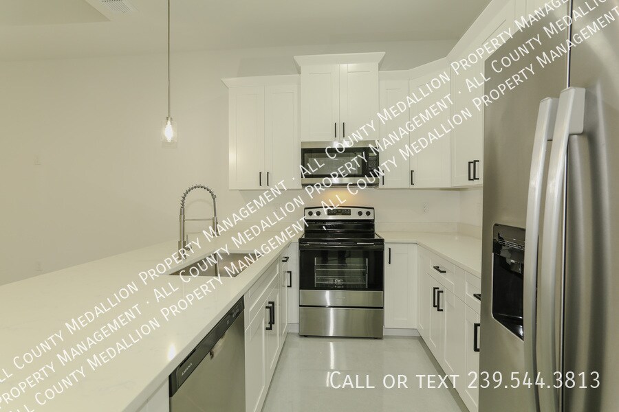 Available Now! Brand New Elegant 3 Bedroom 2 Bath Duplex! Be the first to enjoy this 3 bedroom 2 bath duplex. All marble flooring throughout, a dream kitchen with quartz counter tops and all stainless steel appliances. A one car attached garage is included plus a screened in lanai. Close to everything in both Lehigh and Fort Myers. Washer and dryer are included. No smoking and pets with permission. The other side of the duplex is available as well, take your pick!