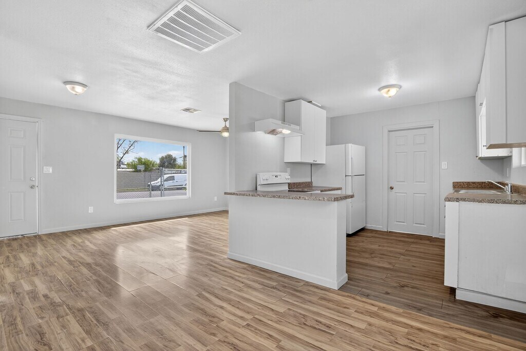 Welcome home to this updated 3-bedroom,1-bath home featuring new A/C,windows,and flooring . Bright and inviting,the living and dining areas offer plenty of natural light. Unit B can be rented separately,making it ideal for multi-generational living. Enjoy a shared laundry room and spacious parking with RV gate access. Conveniently located near the I-17 and I-10 for easy commuting. Laundry access through alley.