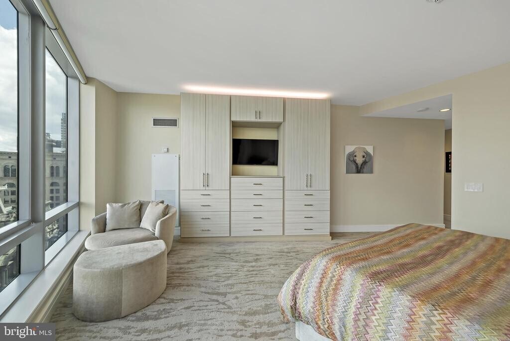 FULLY RENOVATED – Luxury Condo 3BR, 3.5 Bath, Balcony at The Ritz Carlton Residences This unit was gutted & fully renovated including Joanne Hudson kitchen, Ann Saks bathrooms, Mirage and Stark flooring – soup to nuts renovation! The unit features many high end design features and state of the art technology that include: Kitchen: Gaggenau Convection Oven, Gaggenau Oven/Microwave Combo, Gaggenau Five-Burner Brass Gas Cooktop with Wok burner, Fully Vented Hidden Gaggenau Range Hood, Kallista Faucets, Ann Sacks Marble Tile Glass Backsplash, Joanne Hudson Kitchen with Downsview white lacquer millwork and granite waterfall island and Kelly Wearstler Visual Comfort Lighting Fixtures Bathrooms and Powered Room: Kallista Faucets and Sinks, Ann Sacks Marble Tile, Kelly Wearstler Marble Mosaic Tile Flooring: Mirage Wood Floors Through Foyer, Kitchen, Living, Dining and 2nd/3rd Bedrooms and custom Herringbone Wood Through Foyer and Stark Carpeting in Master Bedroom Lighting: Recessed LED lighting throughout household and LED acccent lighting with RGB color options in kitchen, living, dining, and all bedrooms plus Kelly Wearstler Visual Comfort Lighting Fixtures in Kitchen, Bathrooms, and Primary Bedroom Closets and Storage: California Closets throughout all closets, California Closets built-in millwork in all bedrooms with granite tops in 2nd/3rd bedrooms Design: Kelly Wearstler and Christian Lacroix Wallpaper Throughout & Nero Marquina Marble mantle with European Home Gas Fireplace Technology: Complete Smart Home with Controllable Lutron Lighting, Audio/Video Systems, Fireplace, & HVAC Invisible Speaker Surround Sound System - Inside walls and ceiling ElectroLux Extra Large Washer & Dryer Fully concealed sprinkler system Fiber Optic Internet The Ritz-Carlton Residences with distinctive attention to details and design. This 3 Bedrooms, 3 1/2 Baths unit features a balcony with views of Dilworth Park and City Hall Clock Tower. The Ritz offers some of the best amenities in the city, such as: Chauffeur-driven town car, State of the Art Fitness Center with 54 ft. Lap Pool and Yoga Room, Gated Landscaped Garden with 12ft. Water Wall, 24 hr. Concierge and Front Doorman, newly renovated Residents Lounge & Media Room and dog run. **2 parking spots are available for additional fee**