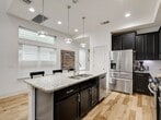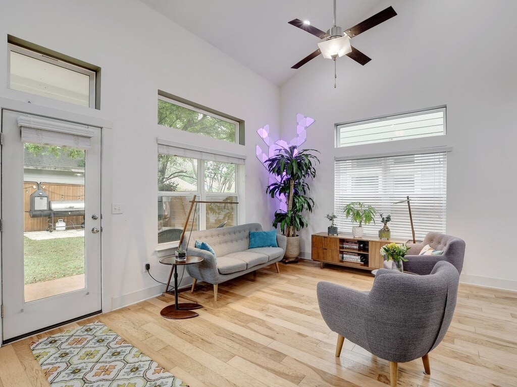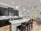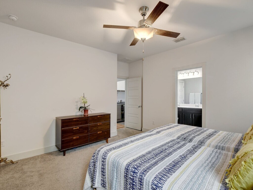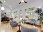 Absolutely gorgeous two-story 4/2.5 townhouse in South Austin! This beautiful home features soaring high ceilings with an open concept layout filled with natural light. The property is in a gated community and the HOA takes care of the landscaping of the front and back yards, so it is also a perfect lock-and-leave property. The contemporary kitchen is an entertainer’s dream with a large center island, granite countertops, tons of cabinet space, and open to the living/dining areas. The spacious and private primary suite is located on the main floor with dual vanity sinks, walk-in shower, and walk-in closet. The upstairs has a large secondary living space that can be used as an additional family area, office, or game room. All the secondary bedrooms are spacious and are located on the second level. The house has a private backyard with a large patio and is shaded by trees. Conveniently located near major highways and just minutes from local shops and restaurants. Refrigerator, washer, and dryer included. Pets welcomed!