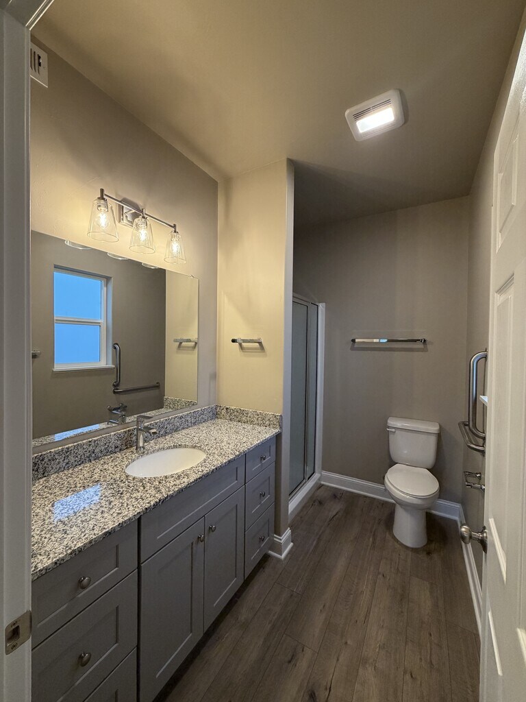 Immaculate patio home near Josephine Crossing. This 2 bedroom, 2 bath home features 1 level living, an open living, dining and kitchen, LVP flooring, plenty of cabinets for storage, spacious onsuite bathroom plus another main bath and washer/dryer are provided. Outside is a fenced patio area with artificial turf and locking gate plus an oversized, heated double garage.