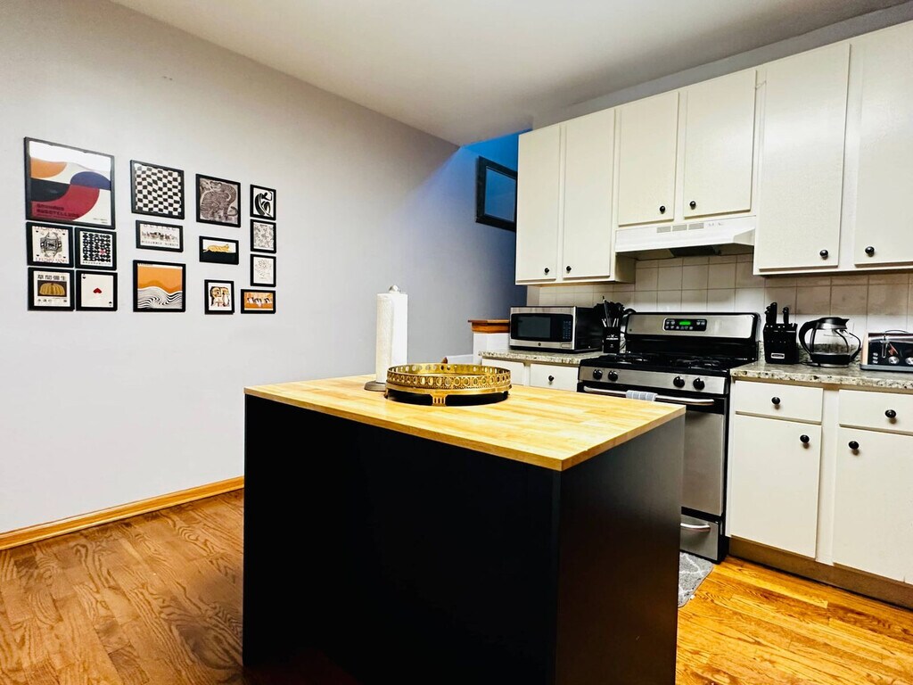 Feel at home in this luxurious and spacious apartment, nestled in the heart of the city. As soon as you step inside, you'll be struck by the open floor plan and sleek design. The living room is the perfect place to relax and unwind, with plush couches, a fireplace, and a 75” flat-screen TV. The gourmet kitchen is fully stocked with cooking utensils, pots, and pans, and ready for your culinary creations, with top-of-the-line appliances and plenty of counter space. Entertainment options include a pool table, Pacman arcade machine, and Roku streaming devices with HBO Max, Netflix, Disney Plus, and Hulu. There is also a 65” TV in the bedroom. Coffee and tea are provided. Two parking spaces are available. This apartment is conveniently located, 15 minutes from Downtown Chicago, 20 minutes from O'Hare International Airport, 17 minutes to Navy Pier, 16 minutes from Millennium Park, 18 minutes to the Field Museum, and 16 minutes to The Art Institute of Chicago. Quiet hours are between 10 PM and 8 AM. No parties and no smoking are allowed. There is a $500 smoking fee. A coin washer and dryer are located right outside the unit. Registration Number: R2 [SI]