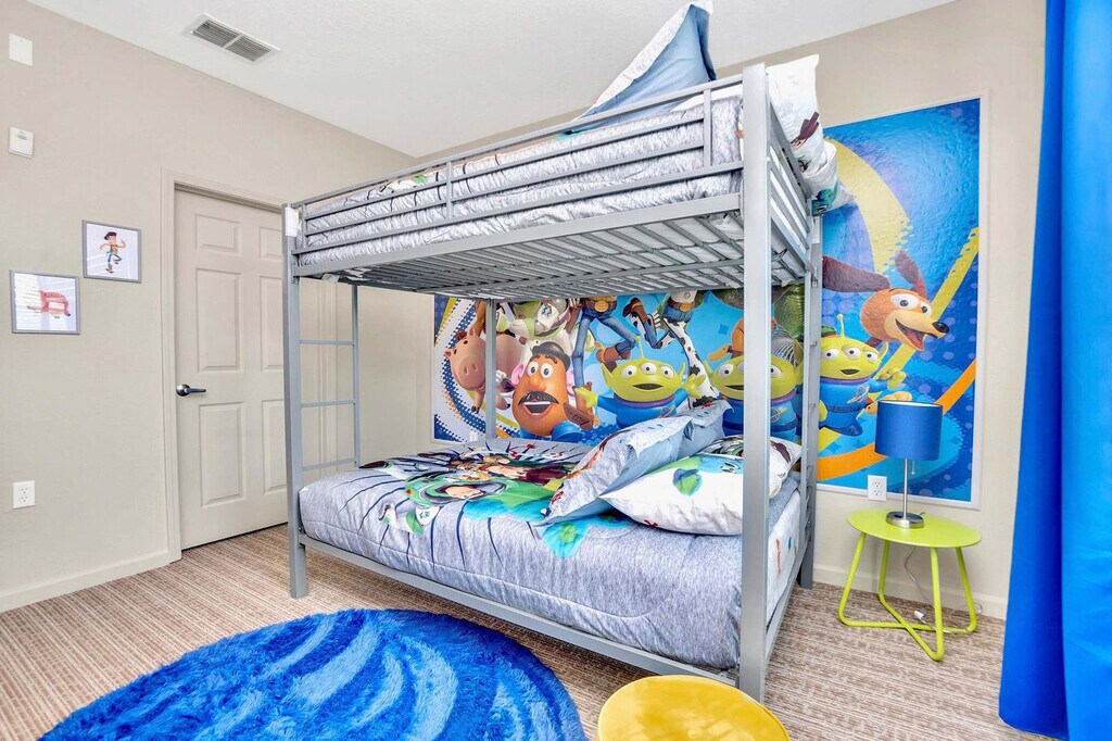 Feel at home in this bright and pet-friendly 3-bedroom condo at Palisades, just 10 minutes from top Orlando attractions. This 1288 sq. ft. condo offers a stylish space to unwind. This condo features a fully equipped kitchen with stainless steel appliances and granite counters, in-suite laundry, and large screened-in patio with outdoor furniture. It includes Smart TVs in every bedroom and high-speed Wi-Fi throughout. The kitchen has counter seating and a separate dining area for shared meals. The primary bedroom has a king-size bed with en suite bathroom, soaker tub, walk-in shower, double vanity, and private patio access. The second bedroom has a queen-size bed and Smart TV. The third bedroom features a bunk bed (twin over full) and Smart TV. The open-concept living room has plush seating, a Smart TV, and fast Wi-Fi. Guests enjoy access to an outdoor resort-style pool, sauna, fitness center, and game room. A "Pack 'N Play Crib" and a Highchair are available for $40 each (one-time fee). A pet fee of $99 per dog applies. Perfectly positioned just off Highway 192, this condo is close to Walt Disney World, Universal Studios, SeaWorld, local restaurants, outlet malls, and golf courses. Nearby family attractions include Walt Disney World, Disney's Animal Kingdom, Hollywood Studios, Epcot, SeaWorld and Universal Studios. Other nearby attractions include Orange Lake Golf Course, Highlands Reserve Golf Club, Lake Louisa State Park, Camping World Stadium, Orlando Science Center and Mennello Museum of American Art. Quiet hours are between 11 PM and 7 AM. Parties, events, and smoking/vaping are prohibited in or around the property and risk a fine and/or loss of the full deposit. Late departures will result in a fine for each additional hour the property cannot be accessed for turnover. Large messes will result in an additional cleaning fee. Firearms and weapons are strictly prohibited. The unit is situated facing the street, and there might be potential noise due to its location. [SI]