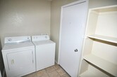 Welcome to this inviting 3-bedroom, 2-bath home offering a comfortable and functional open-concept design highlighted by durable wood-look vinyl flooring throughout the main living areas. The spacious living and dining areas create an ideal setting for everyday living and entertaining. The kitchen is thoughtfully designed with ample cabinetry and counter space, providing plenty of storage and room to work. The primary suite serves as a relaxing retreat with an en-suite bath and generous closet space. Two secondary bedrooms offer versatility for guest rooms, a home office, or additional living needs. A dedicated utility room includes a washer and dryer for added convenience. Step outside to a large backyard with endless possibilities for outdoor entertaining, play, or future enhancements. This home combines practical features, functionality and space—ready to make it your own!