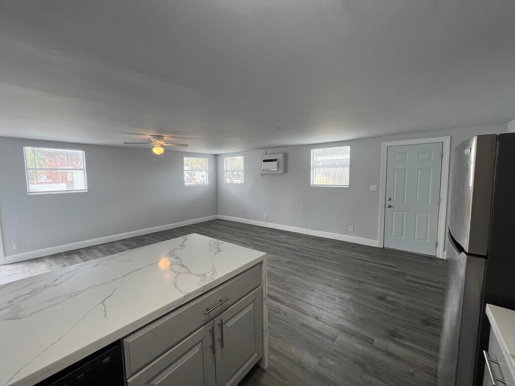 Large modern remodeled studio available now! Annual unfurnished rental. Completely remodeled and stunning open floor plan with modern kitchen, appliances, floors, a/c and much more! Located in Downtown Deerfield Beach in The Cove walking distance to the beach, pier, LA fitness, Publix, restaurants, bars, retail shopping and much more! Open floor plan with full kitchen, bathroom, walk-in closet, and open patio area. Plank style floors! Available for immediate move-in! Plenty of natural light. Lots of storage space. Newer a/c unit. Laundry/dry cleaners located walking distance from property. No HOA. Quick Approvals!