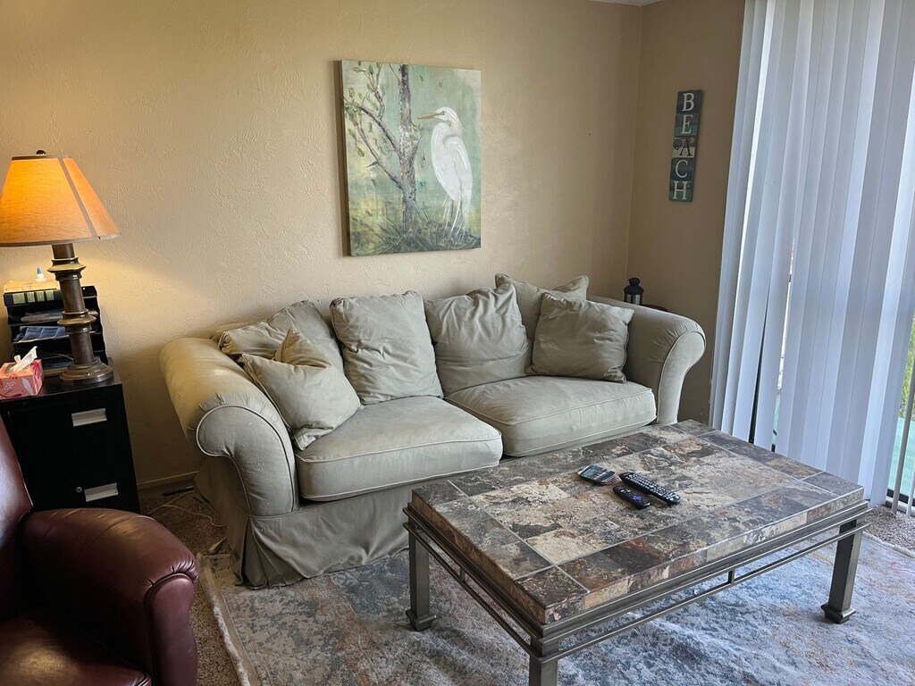 Furnished, rental available August 1 with heated pool, jacuzzi, pickle ball courts with a very active pickleball tournaments, tennis courts, club house with fitness room and billiards table! Long term rent is $1395.00, including utilities, water, WIFI, cable and HOA fees. Tenant responsible for their electric. Amazing Apartment Located in Daytona Beach with kitchen and bathroom. The complex is a resort like setting with six tennis courts, Pickle ball courts, a very large heated swimming pool, in ground spa, and games in the community room. There is a pool table, ping pong table, and library, sauna. Located right across the street from the beach with a path directly across A1A. There is plenty of parking. No pets, no motorcycles or oversize trucks allowed. For more information or to reserve your stay, please call .