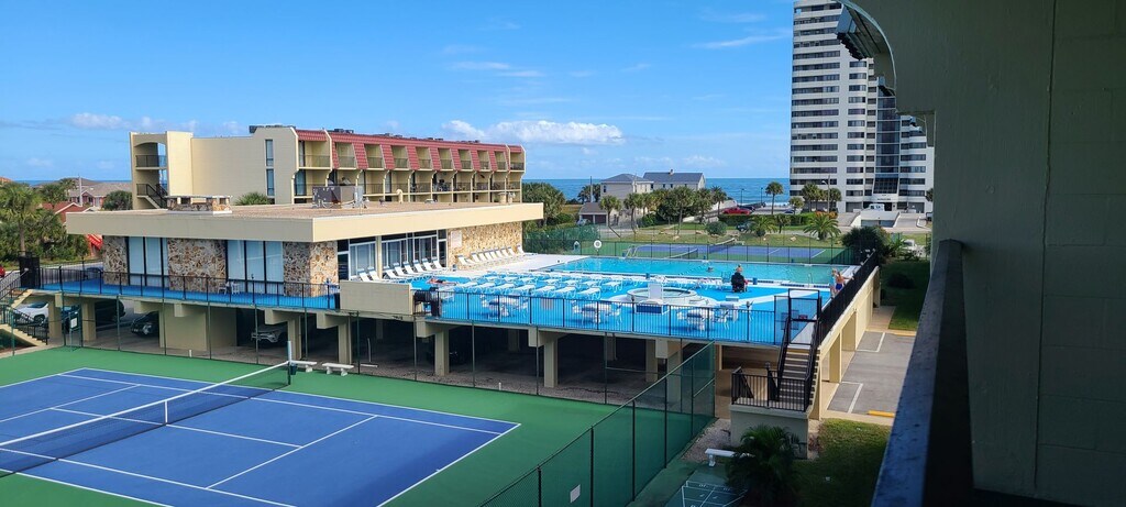 Furnished, rental available August 1 with heated pool, jacuzzi, pickle ball courts with a very active pickleball tournaments, tennis courts, club house with fitness room and billiards table! Long term rent is $1395.00, including utilities, water, WIFI, cable and HOA fees. Tenant responsible for their electric. Amazing Apartment Located in Daytona Beach with kitchen and bathroom. The complex is a resort like setting with six tennis courts, Pickle ball courts, a very large heated swimming pool, in ground spa, and games in the community room. There is a pool table, ping pong table, and library, sauna. Located right across the street from the beach with a path directly across A1A. There is plenty of parking. No pets, no motorcycles or oversize trucks allowed. For more information or to reserve your stay, please call . Contact us to schedule a showing.