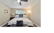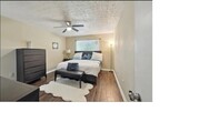 Fully furnished! Great for relocation, students, or someone living for the first time on their own. This quaint two bedroom, two bathroom condo is located on the first floor of the 144 building in College Glen. This condominium is gated and has a community pool and tennis court. Just inside is the living room with the kitchen and dining room to one side and the laundry hallway and bedrooms to the other. One of the bedrooms is equipped with a queen bed and the primary bedroom offers a king bed. Private back patio. Sanitation is included in rent.