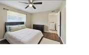Fully furnished! Great for relocation,students,or someone living for the first time on their own. This quaint two bedroom,two bathroom condo is located on the first floor of the 144 building in College Glen. This condominium is gated and has a community pool and tennis court. Just inside is the living room with the kitchen and dining room to one side and the laundry hallway and bedrooms to the other. One of the bedrooms is equipped with a queen bed and the primary bedroom offers a king bed. Private back patio. Trash is included in rent.