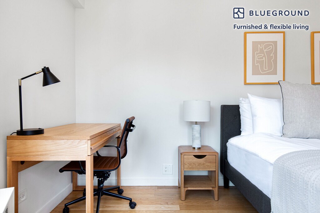 Show up and start living from day one in New York with this pretty one bedroom Blueground apartment. You’ll love coming home to this thoughtfully furnished, beautifully designed, and fully equipped East Village home with stunning views over the city. (ID #NYC605) The advertised rate of $8,530/month is the lowest available price, based on a 3 month(s) and 2 day(s) stay with a move-in date of April 1, 2026. If you’re looking for a 1-year stay, the rate is $9,520/month. Rates vary depending on the duration of stay, season, and other parameters. For exact pricing and additional pricing components, please visit our website and enter your desired move-in and move-out dates. The rate is applicable when billed upfront; it can be higher if billed in multiple payments. Brokers are welcome to reach out. Were you looking for an unfurnished lease? Try Blueground instead and upgrade from unfurnished to furnished living: - Furnished at rates comparable to unfurnished - No setup or furniture costs - save thousands - Move-in ready - save time, just bring your suitcase Designed with you in mind As with any Blueground apartment, you’ll find a thoughtfully designed space complete with beautiful furniture and a fully equipped kitchen in this one bedroom property. And, thanks to our superior quality mattresses, fully stocked linens, and towels, you can relax knowing you’ll always feel comfortably at home. When you’re ready for some fun, you can take in the New York vibes or bring the entertainment to you with the premium wireless speaker or smart TV. Sleeping arrangements King Bed, 70.8in/180cm Amenities Building amenities unique to this one bedroom apartment include an on-site: - Doorman - Dryer in building - Elevator - Washing machine in building - Pets allowed Arrival and ongoing support The entire apartment is yours to enjoy! Throughout your stay, you’ll have access to our Client Experience team through the Blueground App. You can schedule additional cleanings, submit maintenance requests, and view our neighborhood recommendations with just a few taps. We’ll share all details upon confirmation of your stay. Ideally Located This rental is located in NYC’s East Village. Situated east of Bowery between Houston and 14th Street, it has everything to offer. From bars to bookshops, and cafes to clubs, it is undoubtedly a vibrant and enticing neighborhood. The area is simultaneously stylish and laid-back. From the early hours of the morning until late at night, there is always something happening in the East Village. From here, Times Square is 30 minutes away by subway. Other things to note This Blueground apartment has flexible lease options, allowing you to book it for one month, a year, or more. Pets are welcome, though weight limits and breed restrictions apply and may incur fees. Brokes CYOF. We take great pride in ensuring every photo displayed is shot in our own units with our actual furnishings. That said, we regularly refresh our decor and furniture arrangement, which may differ from what’s pictured. [SI]