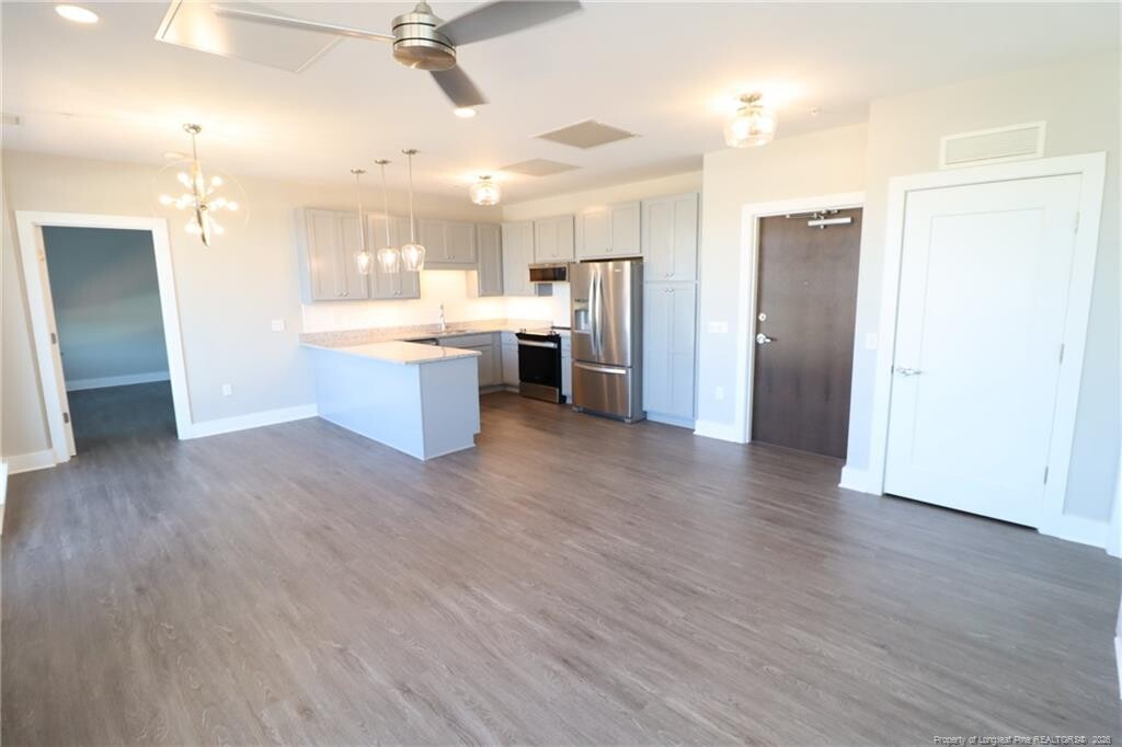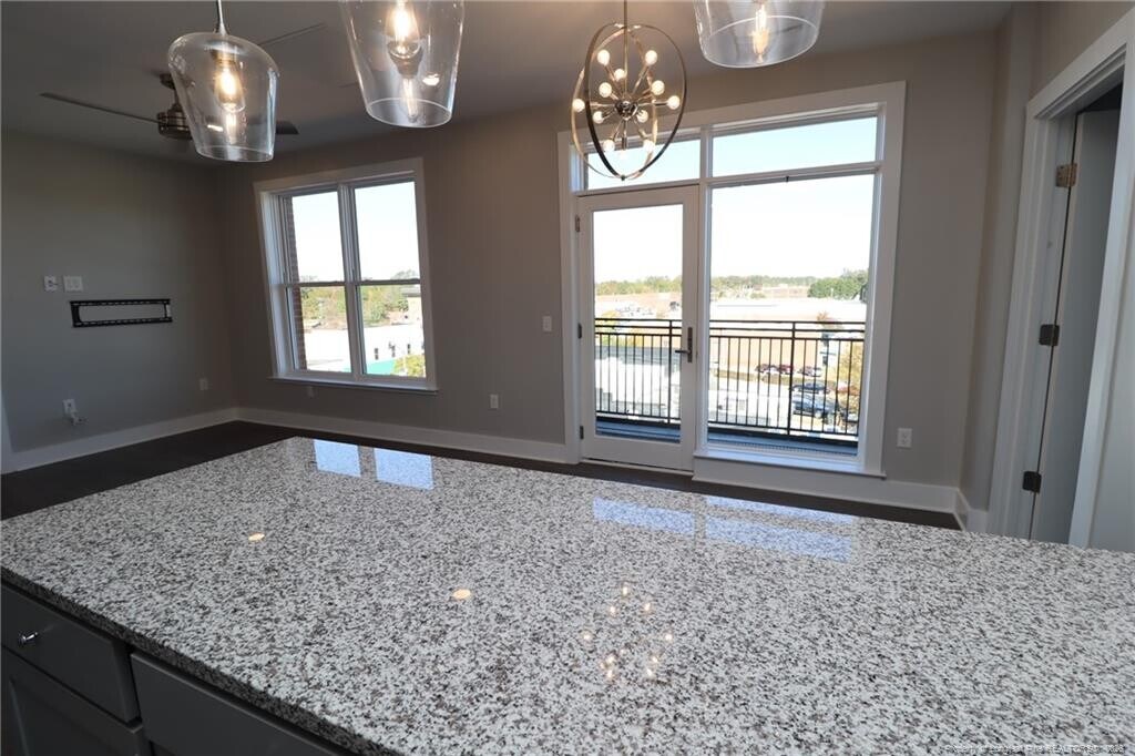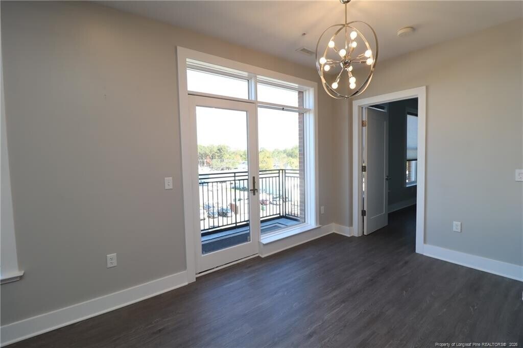 Don't miss out on this rare opportunity to reside in a luxury condo located in Downtown Fuquay Varina and available for immediate occupancy. The Q Condos boasts the most modern finishes and features available; sure to please the most discerning of resident. On top of that, it's located in the very heart of the vibrant and dynamic downtown Fuquay Varina district where all you could want is literally around the corner. Within less than 5 minutes you can find yourself enjoying an old fashioned haircut with a straight razor shave at Revelry Barber Shop, fresh-made bread and sweets at Stick Boy Bakery, a multitude of highly-acclaimed restaurants, local breweries, antique shops, coffee shops, the historic Fuquay Mineral Spring, the Fuquay Varina Arts Center and so much more. Regardless of what you're looking for, you can rest assured it will be nearby when residing at 145 S. Main Street! A secured entrance to the building leads you to an elevator that effortlessly whisks you up to the 4th floor. Once inside the home, you'll immediately appreciate the natural light and impressive panoramic views offered. This feeling is accentuated by tall ceilings and wall-to-wall luxury plank flooring. This product is as durable as it is attractive; not a stitch of carpeting to be found. A centrally-located family room includes double picture windows as well as provisions for a flat panel TV, recessed LED lighting and direct access to a private balcony via glass sliding doors. You can just imagine how nice this setting would be on a pleasant fall evening after a long day at work. The family room seamlessly intertwines with a perfectly-proportioned dining area boasting a custom chandelier. The kitchen at 145-405 S. Main Street is a sight to behold and it boasts modern, gray cabinetry with under-cabinet LED lighting that not only looks awesome at night, but also accentuates the subway tile backsplash and beautiful granite countertops. A suite of sleek stainless steel appliances are equal parts functional and attractive with a smooth-top oven, a built-in microwave, dishwasher and a French door refrigerator. The architect thoughtfully designed this condo with a desirable "split bedroom" design. This floorplan places each bedroom on opposite ends of the home; resulting in a floorplan that offers the utmost level privacy and noise isolation. The primary bedroom boasts dual picture windows, recessed LED perimeter lighting, a remote-controlled fan, double closets and an en-suite bathroom with tiled floors, an extended, granite-topped vanity and a beautiful walk-in shower with a glass enclosure. Bedroom #2 is equally impressive and it also boasts double picture windows, recessed perimeter LED lighting, a remote-controlled ceiling fan, a walk-in closet and direct access to a bathroom; also including tiled floors, an extended, granite-topped vanity and a beautiful walk-in shower with a glass enclosure. Before wrapping-up your tour, be sure not to miss the high-efficiency front-loading washer and dryer provided for resident's use. PROPERTY FEATURES Availability: Available for immediate occupancy Location : Prime downtown Fuquay Varina location within minutes to local parks, entertainment, restaurants, breweries and so much more Secured Entry: Enjoy the peace of mind that comes with secured entry inside the building as well as in the elevator itself Lease Term: 12 and 24 month lease terms are available Pets: Sorry, no pets allowed All Appliances Included: Rent includes washer/dryer and refrigerator for resident's use No Carpet: Tile and gorgeous luxury plank flooring throughout; not one stitch of carpet to be found NOTES: We do not advertise on Facebook or Craigslist. Applications must be completed at $75/adult non-refundable application fee