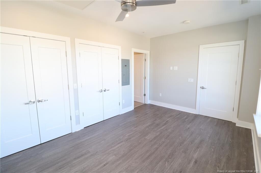 Don't miss out on this rare opportunity to reside in a luxury condo located in Downtown Fuquay Varina and available for immediate occupancy. The Q Condos boasts the most modern finishes and features available; sure to please the most discerning of resident. On top of that, it's located in the very heart of the vibrant and dynamic downtown Fuquay Varina district where all you could want is literally around the corner. Within less than 5 minutes you can find yourself enjoying an old fashioned haircut with a straight razor shave at Revelry Barber Shop, fresh-made bread and sweets at Stick Boy Bakery, a multitude of highly-acclaimed restaurants, local breweries, antique shops, coffee shops, the historic Fuquay Mineral Spring, the Fuquay Varina Arts Center and so much more. Regardless of what you're looking for, you can rest assured it will be nearby when residing at 145 S. Main Street! A secured entrance to the building leads you to an elevator that effortlessly whisks you up to the 4th floor. Once inside the home, you'll immediately appreciate the natural light and impressive panoramic views offered. This feeling is accentuated by tall ceilings and wall-to-wall luxury plank flooring. This product is as durable as it is attractive; not a stitch of carpeting to be found. A centrally-located family room includes double picture windows as well as provisions for a flat panel TV, recessed LED lighting and direct access to a private balcony via glass sliding doors. You can just imagine how nice this setting would be on a pleasant fall evening after a long day at work. The family room seamlessly intertwines with a perfectly-proportioned dining area boasting a custom chandelier. The kitchen at 145-405 S. Main Street is a sight to behold and it boasts modern, gray cabinetry with under-cabinet LED lighting that not only looks awesome at night, but also accentuates the subway tile backsplash and beautiful granite countertops. A suite of sleek stainless steel appliances are equal parts functional and attractive with a smooth-top oven, a built-in microwave, dishwasher and a French door refrigerator. The architect thoughtfully designed this condo with a desirable split bedroom" design. This floorplan places each bedroom on opposite ends of the home; resulting in a floorplan that offers the utmost level privacy and noise isolation. The primary bedroom boasts dual picture windows, recessed LED perimeter lighting, a remote-controlled fan, double closets and an en-suite bathroom with tiled floors, an extended, granite-topped vanity and a beautiful walk-in shower with a glass enclosure. Bedroom #2 is equally impressive and it also boasts double picture windows, recessed perimeter LED lighting, a remote-controlled ceiling fan, a walk-in closet and direct access to a bathroom; also including tiled floors, an extended, granite-topped vanity and a beautiful walk-in shower with a glass enclosure. Before wrapping-up your tour, be sure not to miss the high-efficiency front-loading washer and dryer provided for resident's use."