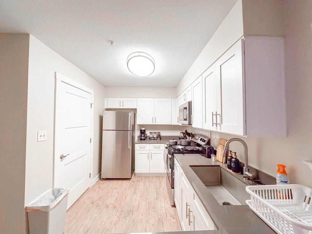 The advertised rate of $2,684/month is the lowest available price, based on a 1 month(s) stay with a move-in date of April 25, 2026. Rates vary depending on the duration of stay, season, and other parameters. For exact pricing and additional pricing components, please visit our website and enter your desired move-in and move-out dates. The rate is applicable when billed upfront; it can be higher if billed in multiple payments. Feel at home in this cozy 1-bedroom, 1-bathroom apartment in Grand Prairie, Texas, perfectly situated for easy access to everything the area has to offer. This modern apartment features stylish wooden floors throughout and an open-concept design that seamlessly blends the living, dining, and kitchen areas. The kitchen is fully equipped with a microwave, stove, oven, refrigerator/freezer, dishwasher, toaster, coffee machine, kettle, and Brita water filter. The bathroom is spacious and stocked with towels and essential toiletries. Additional amenities include air conditioning, heating, a ceiling fan, and a washer/dryer. Parking is complimentary and pets are welcome with a fee of $150 per pet. Conveniently situated by 360 North Tollway, a historic Grand Prairie route, this apartment is within walking distance of a vibrant public square, shopping streets, and local restaurants. Explore attractions such as Grand Prairie Premium Outlets (7.4 miles away), Lincoln Square (3.5 miles away), River Legacy Parks East (1.8 miles), and Six Flags (1.6 miles). The apartment is also near Dallas Love Field Airport (19 miles), Dallas Fort Worth International Airport (7.6 miles), Concentra Urgent Care (1.5 miles), Baylor Scott & White (8 miles), Surepoint Emergency Center (4.5 miles), Mid Cities Animal Urgent Care (7 miles), Medical City Dallas Hospital (7.9 miles), Highway 360 North, and Interstate I30 (2.3 miles). A fee of $200 will be charged for losing or taking the key fob, a $1000 smoking fee will be charged if you smoke inside the apartment or on the balcony, and early check-in or late checkout is available for $25 per hour. The maximum number of guests allowed inside the apartment is 4. Includes an office desk with chair. [SI]
