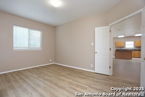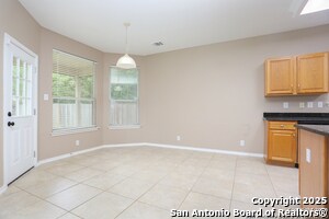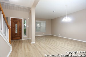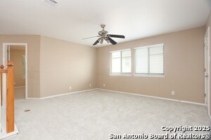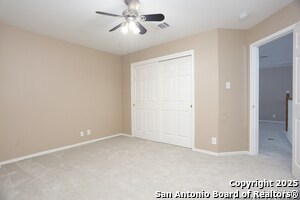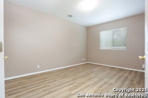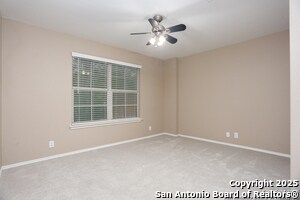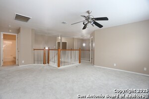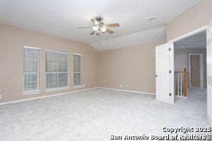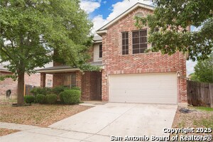 Spacious 4 bedroom; 2.5 bath home in 3235 sq.ft. Open floor plan; spacious living room; island kitchen granite counter tops; custom cabinets; second floor loft. All bedrooms upstairs. Ceramic tile & wood-look vinyl on 1st floor. Carpet on 2nd floor. Primary bedroom is split from others. The spacious en-suite includes, bathroom w/double vanities, and separate garden tub & shower. Large walk-in closet. Backyard features covered patio and privacy fence. Just down 1604 from La Cantera Shopping & Fiesta Texas