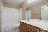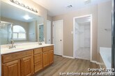 Spacious 4 bedroom; 2.5 bath home in 3235 sq.ft. Open floor plan; spacious living room; island kitchen granite counter tops; custom cabinets; second floor loft. All bedrooms upstairs. Ceramic tile & wood-look vinyl on 1st floor. Carpet on 2nd floor. Primary bedroom is split from others. The spacious en-suite includes, bathroom w/double vanities, and separate garden tub & shower. Large walk-in closet. Backyard features covered patio and privacy fence. Just down 1604 from La Cantera Shopping & Fiesta Texas.