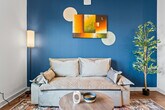 Welcome to your magical gateway, just 10 minutes from Orlando's magical parks! Perfectly located for Disney and Universal, this apartment offers a peaceful retreat with all the comforts of home. Whether you’re here to explore the magic, unwind, or even stay for long-term, you’ll love every moment of this cozy space. The property sleeps 4 people. This apartment values you as a guest, making your stay simple and enjoyable. The living room features a queen-size sofa bed for additional guests, a 50” smart TV for entertainment, and a cozy atmosphere to relax in. The bedroom boasts a plush king-size bed, a 43” smart TV, a ceiling fan, and a walk-in closet with plenty of storage. The bathroom offers a relaxing bathtub and shower with complimentary toiletries. The fully equipped kitchen includes a stove, microwave, refrigerator, coffee maker, dishwasher, and a full set of cookware and utensils. A dining table with 4 chairs is also provided. Additionally, there is an in-unit washer and dryer for your convenience. Complimentary parking is available for up to 3 cars. An EV charger is available for electric vehicles, subject to availability, with a fee applied when used. A Pack'n Play crib is provided, including a crib sheet and blanket. Luggage drop-off is available after 12:30 PM with prior notification. Nearby attractions include Disney Parks, just 10 minutes away, and Universal Studios, about 20 minutes away. The local area offers vibrant shops, restaurants, bars, and recreational spots, all very close to the property, with many within walking distance. Pets are welcome, but some breed restrictions apply. Standard check-in time is at 4 PM, with early check-ins arranged when possible. This is a smoke-free community. A short drive to Disney and Universal, the location is so close you can hear Magic Kingdom fireworks at night. Paintings in the home are originals by the family and may vary from the photos from time to time.