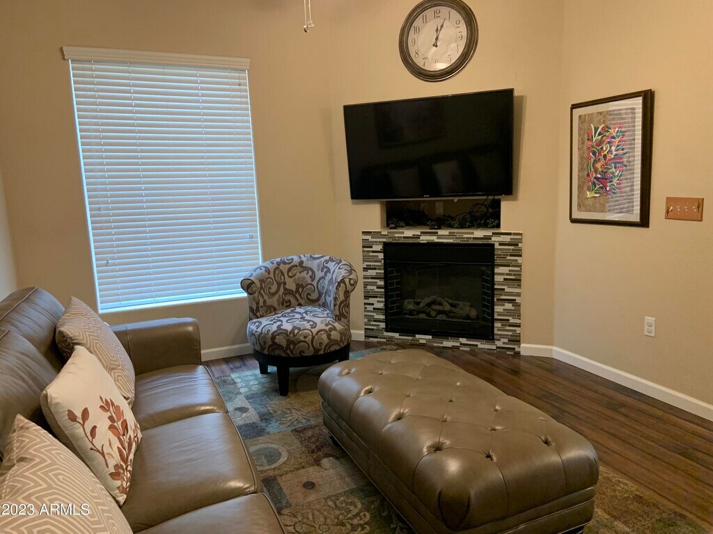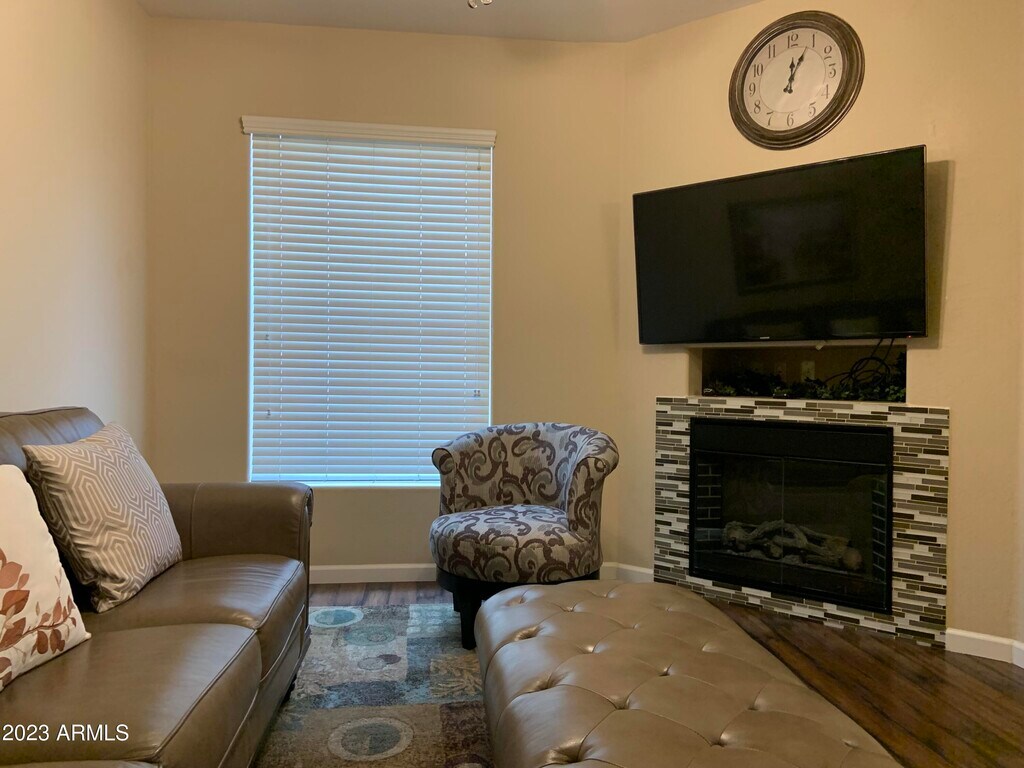 FULLY FURNISHED!Amazing 2 bedroom condo in a great area of Surprise. 30 night minimum. The coveted ground floor everyone it looking for. This home away from home lives large and has two car garage too boot. Step inside through the garage or private courtyard and you will instantly be welcomed by the contemporary decor and open concept living room,dining room and kitchen. Reclining furniture throughout the living room just in front of the cozy fireplace and TV. Dine in style on the dining room table and chairs for 4 or site up to the breakfast bar for a quick cup of java or to chat during meal prep. The kitchen is spacious with lots of counter space,cabinets and a stand alone coffee bar. It has absolutely everything and more than you will need to cook,bake or prepare a BBQ meal. Down the hall you will find the master bedroom with a king sized bed,private courtyard,large tv and spa like bath with a walk in shower,double sinks and a walk in closet. Bedroom 2 has a queen sized Murphy bed,that can be put up for extra space in the 2nd use for the space and office with 2 separate work spaces. This bedroom also has a large hall bath with tub and shower combo. There is a full sized laundry room,2 car tandem garage and super fast wifi. Outside you have your choice of 2 private courtyards,one off the master and the other attached to the entrance either perfect for an evening cocktail. Park Place Condominiums has raised the bar on upscale living Surprise AZ. Winding streets that meander through the manicured grounds. Expansive greens and winding jogging trails transport residents to a tropical paradise while the heated spa and pool,lush landscaping and spacious walkways invite vacationers to relax outdoors and the premiere luxury resort community in Surprise,AZ. Located on the northwest edge of Phoenix in the heart of one of Arizona's fastest growing cities,the 258-unit condominium community offers the convenience of nearby shopping,fine dining and easy freeway access. Mansion-style and mid-rise homes add architectural distinction to the community at Park Place. The amenities at Park Place are not at all limited.. The resort community caters to the active lifestyle of its residents with its multi-million dollar,two-story clubhouse which includes a state-of-the-art fitness center,yoga studio,aerobic room and massage treatment room. A business center and movie screening room with theatre-style seating accommodate the varied tastes of those who call Park Place home. With all that Park Place has to offer,it's no surprise that vacationers are excited to call Park Place home if only for a brief visit!