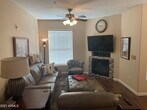 Long or Short term available NOW! End unit with covered patio,courtyard,and 2 car tandem garage. This gorgeous lower level pet-free condo is fully furnished & beautifully appointed with every amenity to make your stay peaceful & relaxing! 2 spacious bedrooms,each w/queen beds,TV,dressers,fans & dimmable lights throughout. Plenty of seating,storage,smart TV,& electric multi-mode fireplace for heat,ambiance or both,in the living room. Cozy dining,and large fully stocked kitchen with all your cooking and serving needs covered,including appliances small and large. Convenient location near the exit gate of this lovely resort style community w/pool and rec center. Rates vary by season and lease term