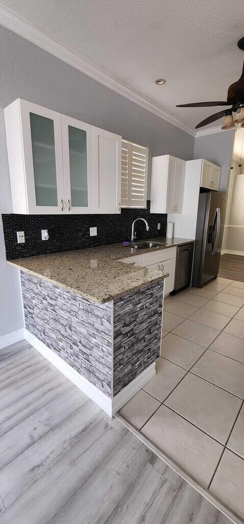 Association Deposit: No Amenities: Bike - Jog; Clubhouse; Sidewalks Garage Spaces: 1 Tenant Pays: Cable; Electric; Sewer; Water View: Canal Flooring: Tile; Vinyl Floor Waterfront Details: Pond Heating: Central; Electric Interior Features: Pantry Restrict: No RV Cooling: Ceiling Fan; Central; Electric Exterior Features: Covered Patio; Shutters Parking: 2+ Spaces; Driveway; Guest Equip/Appl Included: Dishwasher; Dryer; Microwave; Range; Refrigerator; Washer; Water Heater - Elec Miscellaneous: Assigned Parking; Central A/C; Community Pool; Den/Family Room; Washer / Dryer Unit Desc: Unfurnished Rooms: Security: Gate - Manned Type: Single Family Detached Master Bedroom/Bath: Mstr Bdrm - Ground; Separate Shower Laundry Appliances Included: Washer and Dryer Lot Description: < 1/4 Acre Storm Protection: Panel Shutters: Complete Pet Restrictions: Number Limit Gated Community: Yes