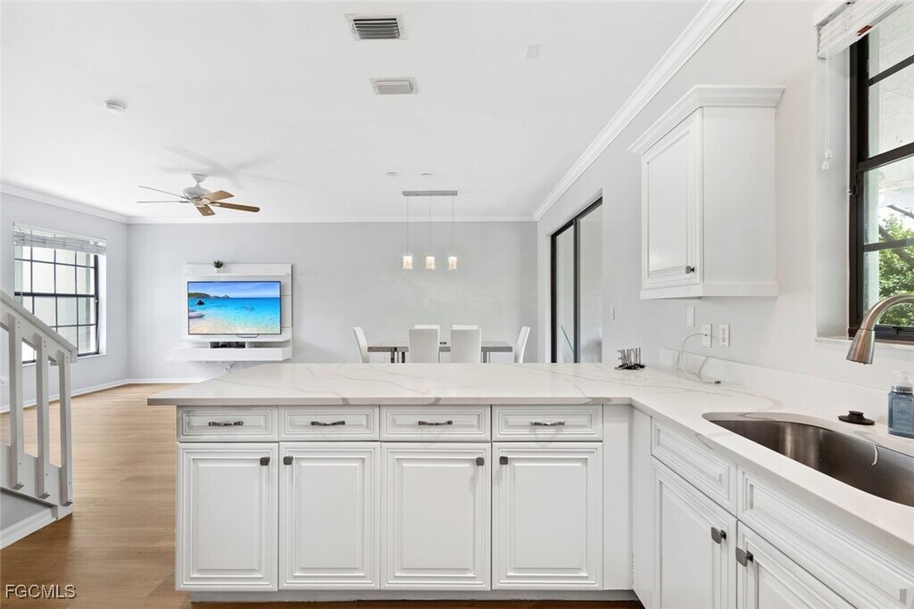 Welcome to this spacious and pristine 3 bed,2.5 bath townhome featuring quartz countertops in both the kitchen and bathrooms,stainless steel appliances,crown molding,and luxury vinyl flooring throughout. The owner’s suite includes a tray ceiling,large walk-in closet,dual vanity,and guest bedrooms with plenty of closet space. Additional highlights include a smart thermostat,screened-in lanai,and brand-new roof. This move-in ready home is located in a quiet HOA community that includes internet and cable,fitness center,security gate,basketball,tennis/pickleball courts,playground,community pool with spa,and a fishing pier overlooking a peaceful pond with fountain views. Don’t delay—get your slice of paradise today!