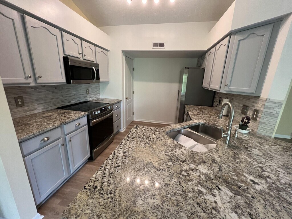 Beautiful 2nd Floor Condo with vaulted ceilings,fireplace,incredible views. Fully equipped kitchen,garage entrance into the hallway lots of room for storage. Great neighborhood,facilities,such as pool,workout room,walking trails,scenic waterways etc. Close to shopping,restaurants,schools etc.