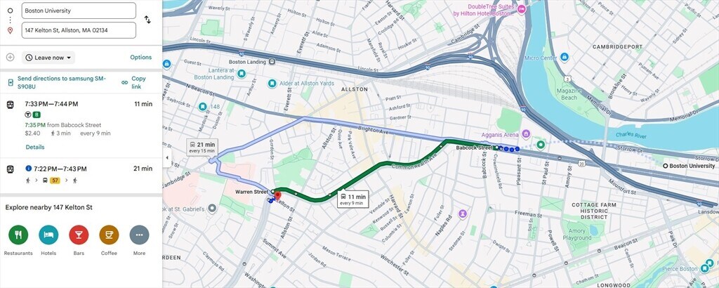 147 Kelton St has 5 shopping centers within 0.9 miles.