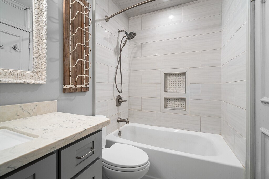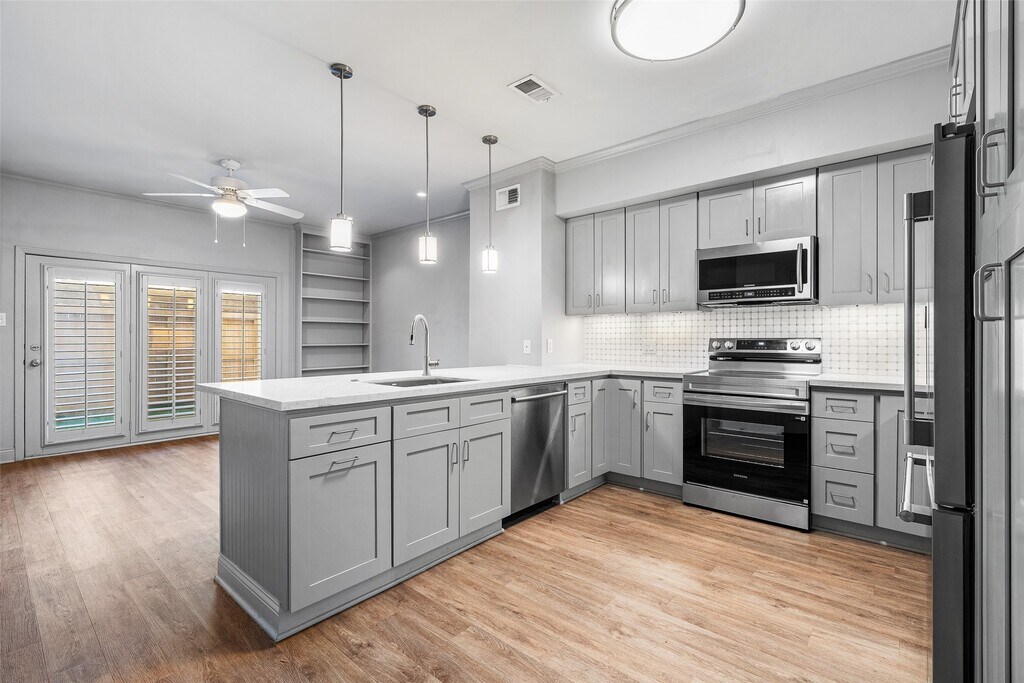 MODERN + CHARM. Renovated in 2017! Brand new stove and freshly painted walls. You immediately feel at home when you walk in,greeted by rich woods,calming colors and beautiful countertops. Your dining room provides endless built ins,and leads right out to your outdoor oasis. There are two bedrooms upstairs,each with their own beautifully updated bathrooms. You'll notice so many luxurious details as you walk through the home. Don't miss the decorative tiles and skylight at the top of the stairs. This house has NEVER flooded,providing extra peace of mind. Location is everything and you can't beat this one. Located in the Energy Corridor,close to trails,and within the Spring Branch school district. On all of those hot Texas days you'll have not one,but two pools to enjoy! Water + Cable is included. Refrigerator,washer and dryer will stay. Outdoor closet provides so much extra storage space. Plus,you'll have two covered parking spaces right outside your door. Welcome home! MLS# 34709785