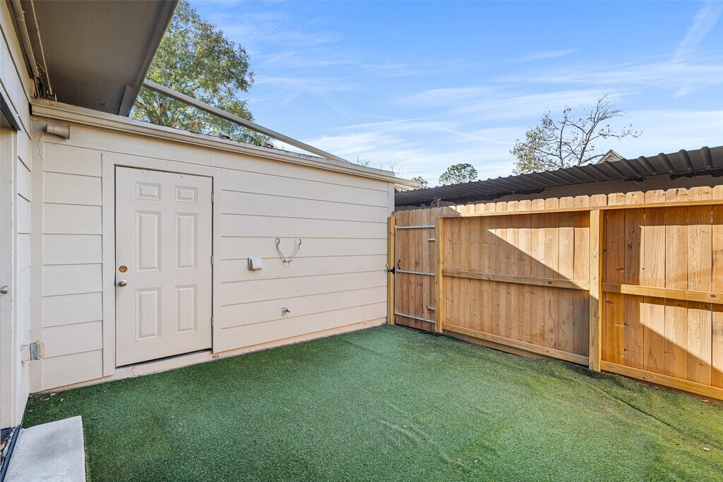 Location,location,location! London Townhomes are in the highly desirable Energy Corridor. Come home to this lovely 2 bed,2 1/2 bath townhouse. Walk through a beautiful,calming courtyard to your front door or enter through your landscaped rear patio from your covered carport. As you enter the front door there is a large den to the right,stairs to your right. Through the hallway,there is a modern kitchen with stainless steel appliances and granite countertops open to a family room. Opposite there is guest half bathroom. The family room is styled with high ceilings,book shelves at either end with triple French doors in the center bringing the outside in. Upstairs there are two bedrooms,each with their own bathrooms. Washer/dryer is in the shed on the patio. Basic cable (subject to HOA),water and sewage included and there is a low commercial electric rate. Easy access to I-10,City Centre,Town and Country Village and Memorial City Mall. Low commercial electric rate. MLS# 25156722