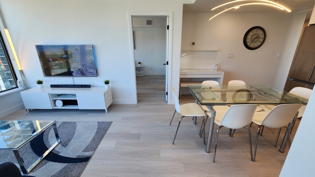 This Immaculate, fully furnished, 2 Bedroom, 2 Bathroom Sub-Penthouse in the elusive Brooklyn Building is located in the heart of Downtown Kelowna. With the beach, boardwalk, restaurants, breweries and more just steps away - you cannot beat this location. No details have been missed in the design. Vinyl Plank Flooring, 10 foot ceilings, High End Stainless Steel Appliances, Quartz Countertops and a built-in wine bar!! The patio off the living room boasts a fabulous space to enjoy year round with stunning, unobstructed lake, city and mountain views! The primary bedroom and spare room both host King-sized beds. With a stacker washer/dryer combo hidden in the hallway closet - this suite has everything you need. The Brooklyn rooftop terrace offers a year-round location to host your guests. Sit by the fire, use the BBQ and soak in panoramic Okanagan Views - mountain, lake and city. The 5th floor also has a dedicated community garden! - 2 Bed, 2 Bath 24th Floor Sub Penthouse - 1020 sq ft - Available May 1st 2026 - 1 Year Lease to Start - Beautifully Furnished - $3650/Month + Utilities - Stainless Steel Appliances (fridge/bottom freezer, dishwasher, electric range/oven) - Vinyl Plank and Tile Flooring - Bathtub - Central Heating/AC - In Unit Laundry - Underground Parking for 2 - Bike Storage - No Smoking/Vaping/Marijuana use - Walk Score - 98 / 100 - Bike Score - Tenant Insurance Required We schedule our viewings through a calendar for your convenience! Please schedule a viewing at this link: *This property is marketed by Lindsay Anderson Personal Real Estate Corporation, A Licenced Property Manager with Vantage West Realty Inc. on behalf of the property owner.*