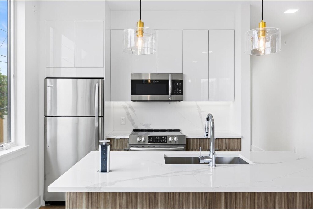 This gorgeous, upscale condo-style residence is meticulously designed, pairing an airy open layout with exceptional storage. The kitchen serves as the home’s centerpiece, featuring sleek two-tone cabinetry and striking custom marbled quartz countertops with a matching backsplash. For the home chef, a full suite of top-of-the-line appliances includes a professional-grade fully vented range hood. The refined aesthetic extends to the spacious bath, where cool LED mirrors highlight luxury finishes. Modern essentials are seamlessly integrated, from wide-plank natural oak floors to a high-performance LG washer and dryer. Residents enjoy premium building amenities, including a private parking garage, a pet-friendly atmosphere, and a state-of-the-art fitness center. Available on July 1.