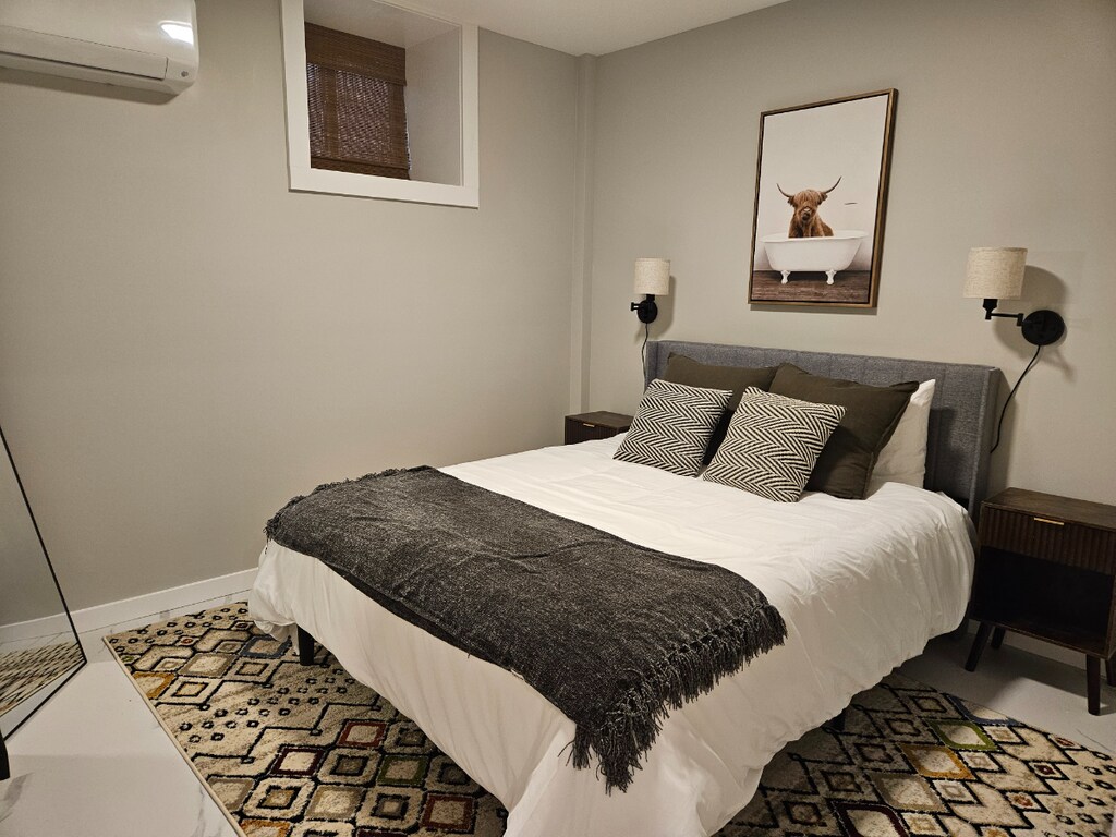 This listing is for a fully-furnished 2 br daylight basement apartment (meaning it has windows at street level but is half below ground). Turnkey ready - all furniture, kitchen wares, bedding, art, decor and accessories are included, as are all utilities and internet. The apartment is being furnished, and the photos are of the empty unit; if you would like to see what the finishes and furnishings will look like, please see our 3br listing in the same property (unit 7). All of our 2 and 3 bedroom apartments have upgraded finishes, including digital locks, central heat and A/C, dishwashers, in-unit washer/dryers, and rain showers. At Dimora Living, we manage our properties with pride, and provide a full-service experience for our residents, putting your comfort and needs above all else.