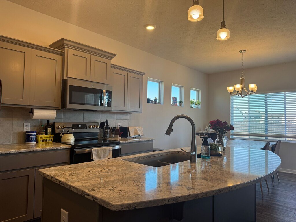 This beautifully maintained 4-bedroom, 3-bath ranch offers a bright, open layout with plenty of space for comfortable living and entertaining. The kitchen features quartz countertops, tile backsplash, a large island, pantry, wood laminate flooring, and an eat-in dining area that opens to the living room with a cozy corner stone fireplace. All appliances are included, even the washer & dryer. The spacious primary bedroom includes a private ¾ bath with quartz countertops, double sinks, and a large walk-in closet. Two additional bedrooms, a full bathroom, laundry room, and convenient drop zone complete the main level. The finished basement offers a large rec room, fourth bedroom, and ¾ bathroom along with ample storage space. Outside, enjoy a flat backyard with a deck, included playset, partial fencing, and sprinkler system—perfect for relaxing or play. Located in the Bellevue School District close to Offutt AFB with easy interstate access. Available June 1st for $2750 per month. Small dogs are allowed with a pet fee of $50 per month. Rental application is $45 per adult and security deposit is $2750. Contact Justin Ogburn for information or showings at or .