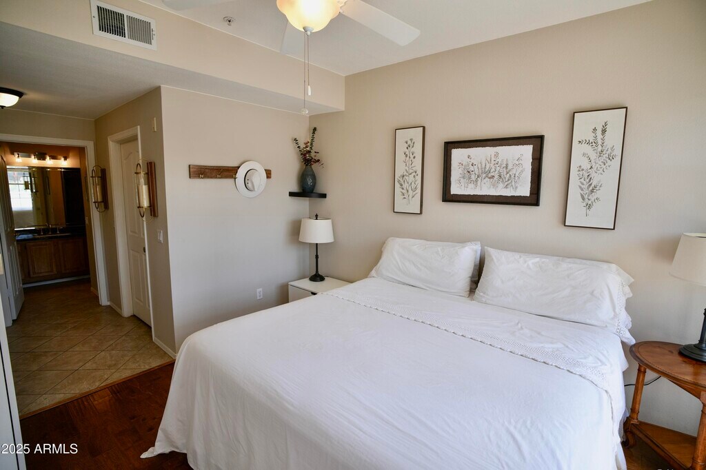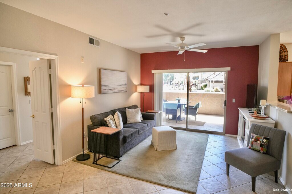 Resort Living! Perfect furnished & fully outfitted turn-key ground floor 45+ vacation rental. Includes utilities,all housewares,linens & essentials. Prime location near beach-entry pool,hot tub,community center,salon & mailbox. Close to shops,restaurants & medical. Assigned covered car parking. Lovely one bedroom w/ensuite full bath,beautifully tiled shower. Comfortable den w/half bath,great for guests. Peek-a-boo mountain view from your spacious patio. Granite Countertops throughout. New fridge & dishwasher. Includes access to all amenities in The Grand including 4 golf courses,2 fitness centers,inside track,4 additional pools,pickleball,tennis,bocce,woodworking shop,pottery kiln & more. $100 electric cap. No Pets. $2500 Jan-March. $2000 Dec & April. 3 month minimum.