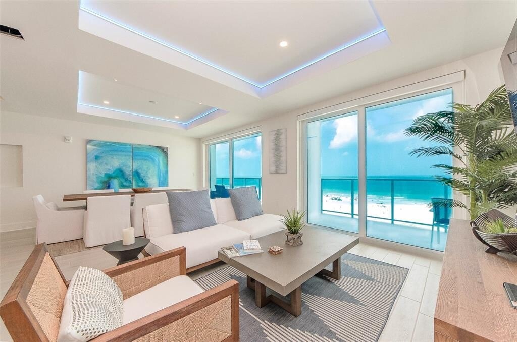 Located on the world renown northern end of Clearwater Beach,this exclusive building offers privacy,and a spacious unit at the height of luxury. Its offers 4 bedrooms 3.5 bathrooms,its luxurious design mixes style with pleasure and the latest technology,color changing led lighting,electronic sunshades,TVs in every room,kid studio that sleeps 6,all while enjoying the breathtaking views Clearwater Beach has to offer. Direct elevator access leads to the private foyer which spills into the gourmet kitchen equipped with stainless steel appliances. High ceilings,spa-like master bedrooms,and recessed wall fixtures add lavish touches. This unit comes complete with surround sound,washer and dryer,dishwasher,and wine cooler. Walk to pier 60,Pura Vida allows for shopping and dining while maintaining the convenience and seclusion. View the dazzling expanse of the Gulf with views through the floor to ceiling hurricane-proof windows and glass paneled balcony. Amenities include 2 reserved covered parking spaces,resistance pool,spa,fitness and clubroom. Available for long term lease October 1 2024 MLS# U8157473