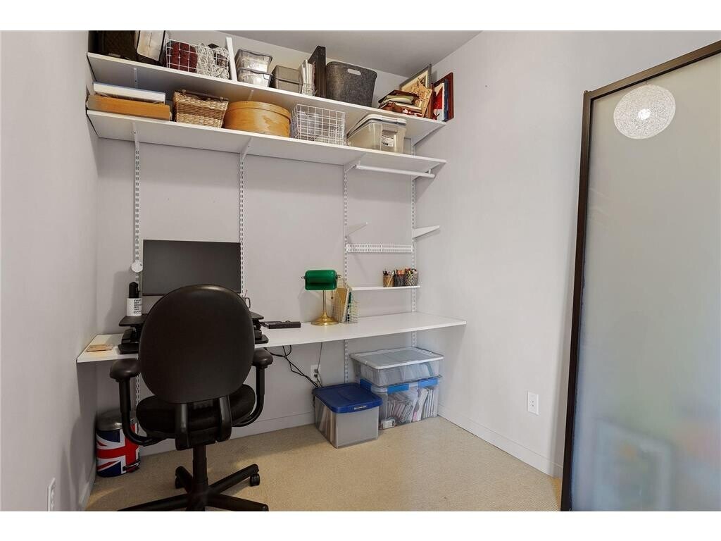 Welcome to this spacious 1 bedroom + den condo located between uptown and downtown. This open floor plan features stainless steel appliances, wood floors, and in-unit washer and dryer, and large terrace overlooking the back green-space. This condo includes one heated parking stall and a storage locker.