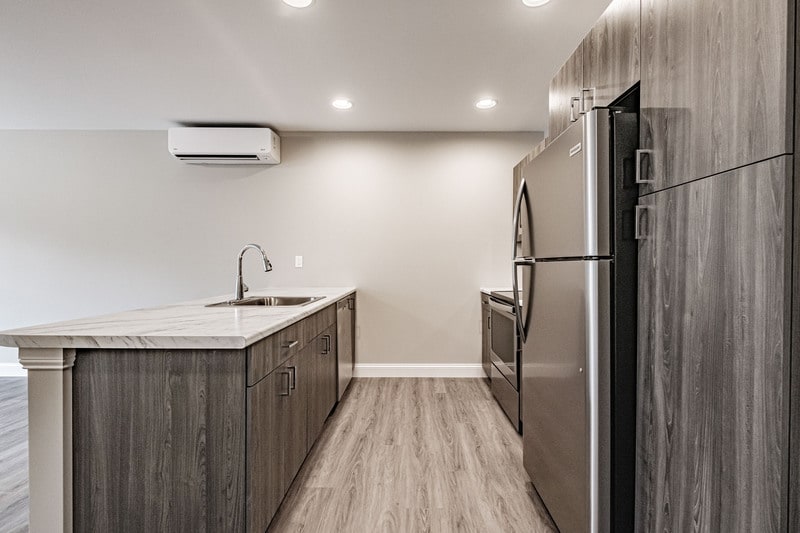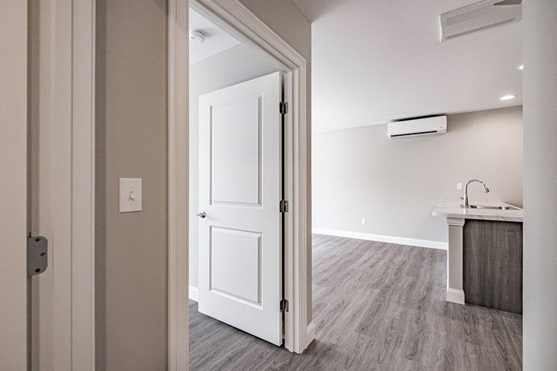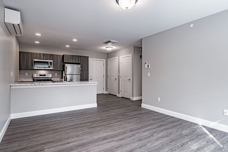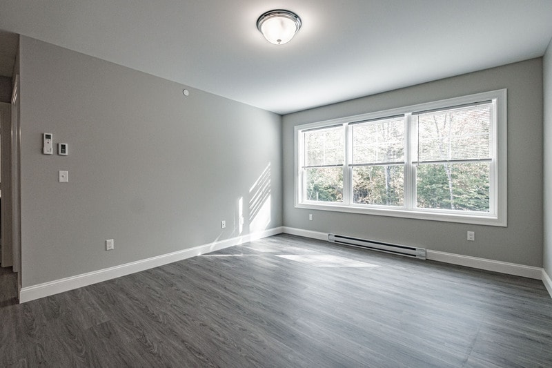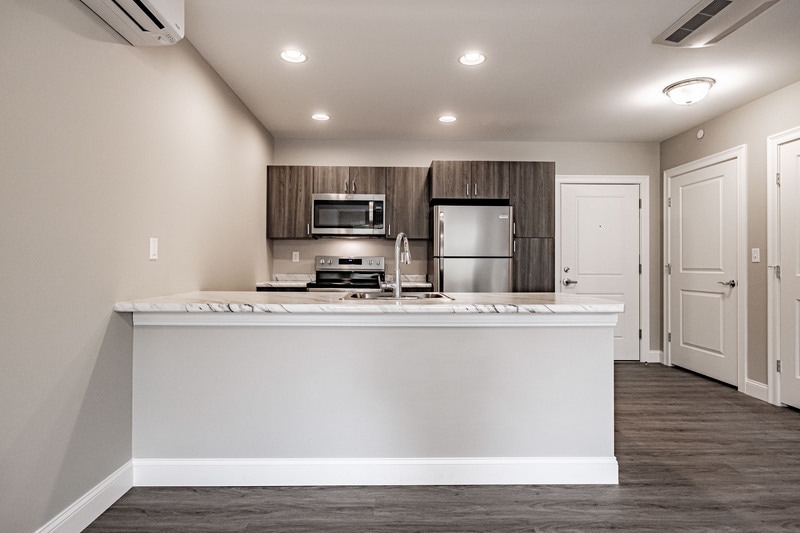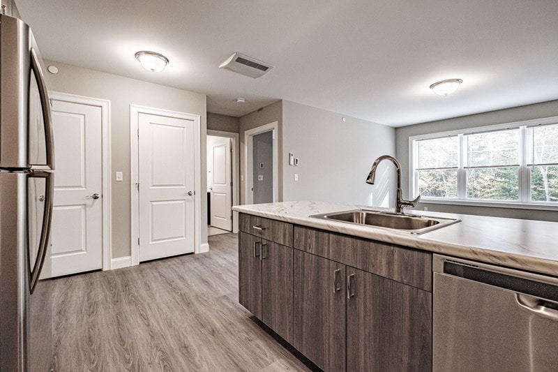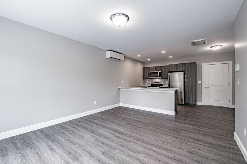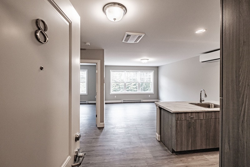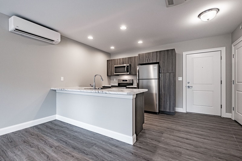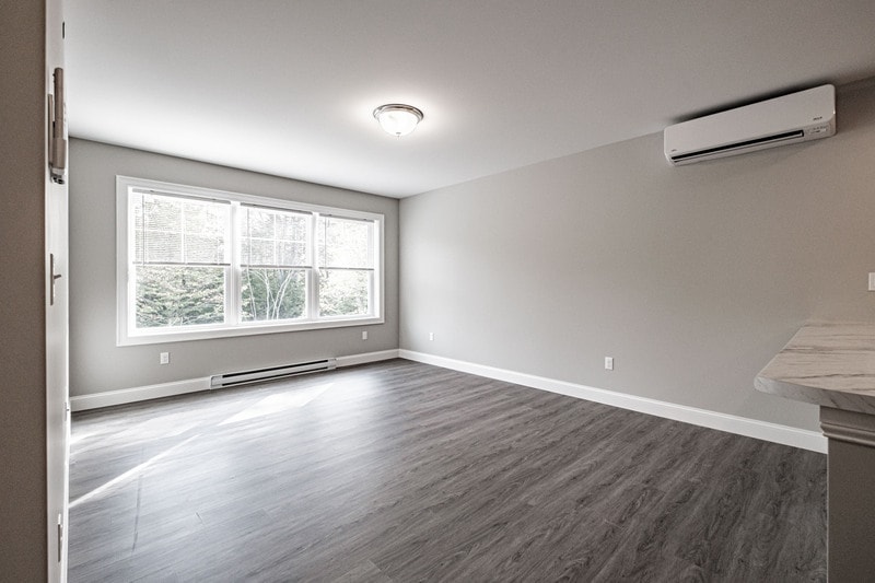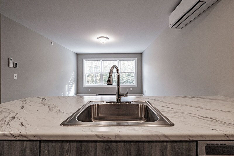 1 bedroom, 1 bathroom apartment. Extremely energy efficient; featuring open concept living, fully applianced kitchen, stainless steel appliances, kitchen island w/ recessed lighting, washer & dryer, air conditioning, ceramic tile in bathroom, wood-style flooring throughout, modern design, ceiling fan, spacious closets, high-speed internet available, public water, walk-in shower w/ seat, no maintenance (services to include snow removal, mowing, landscaping), privacy control wall & ceilings, private wooded location, jogging/walking paths, yet right off route 302. *All applicants subject to credit and background check.