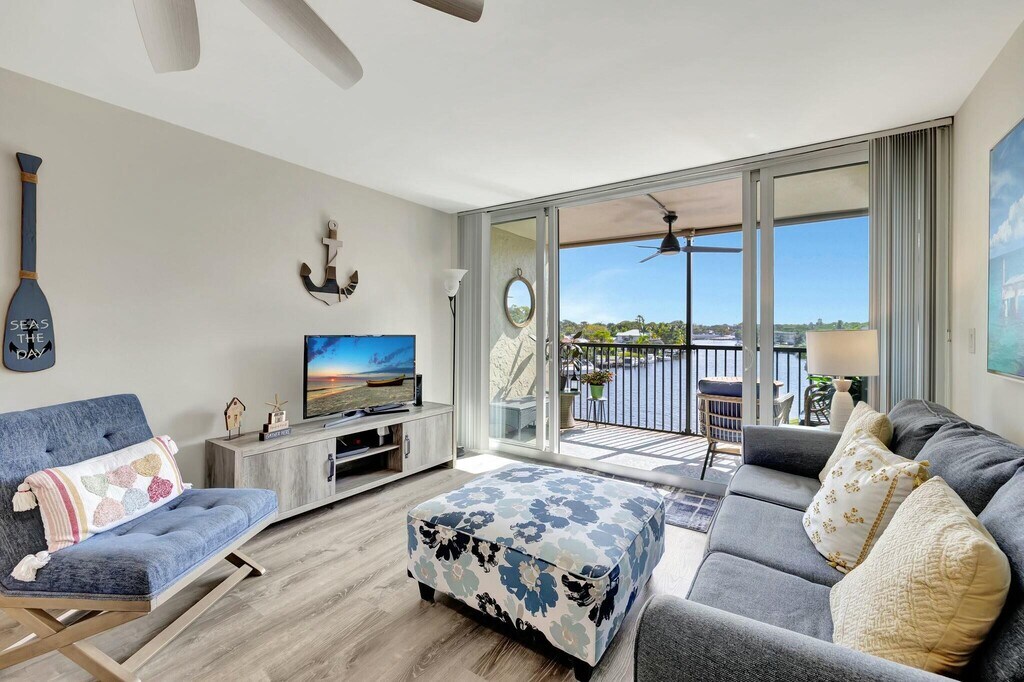Discover this beautiful two bedroom, two bath condo showcasing breathtaking views of the Intracoastal Waterway. Freshly painted in crisp white, the oversized layout enhances the natural light and provides an open, airy feel with a spacious kitchen perfect for entertaining.Enjoy a resort style lifestyle in this newly renovated community featuring a soon to be completed modern clubhouse, five saltwater pools, tennis and pickleball courts, and a designated storage room. This move in ready residence combines comfort, style, and an unbeatable location. Schedule your private tour today.