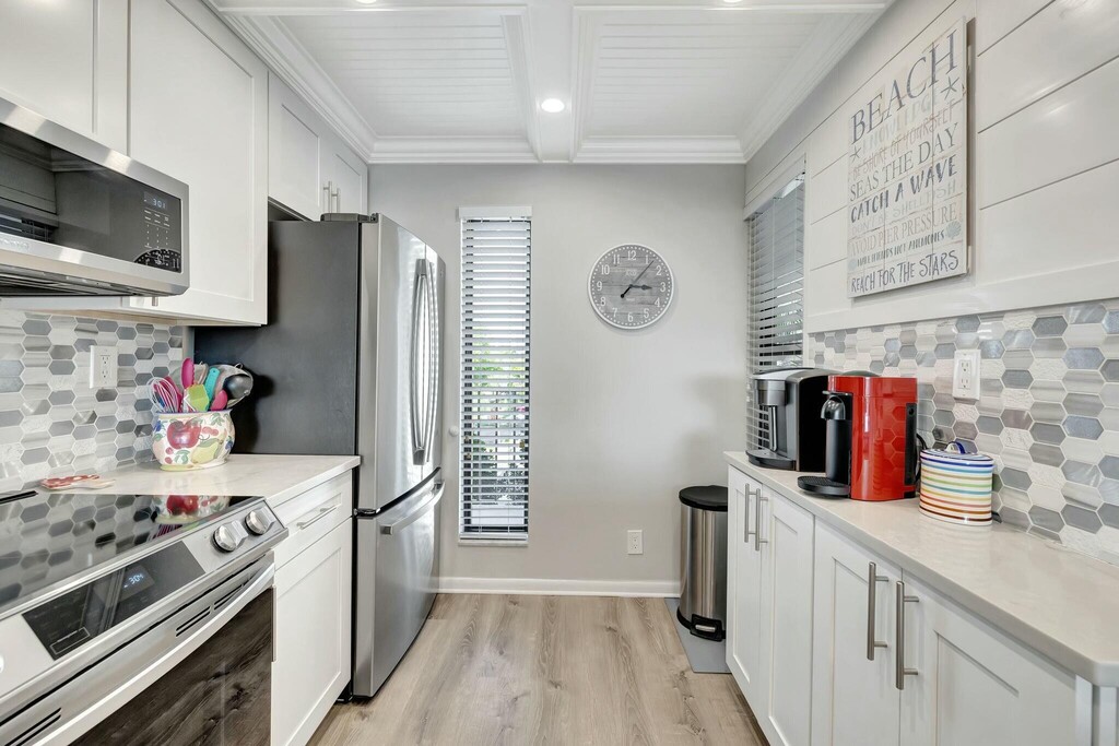 Step into elevated waterfront living in this exquisite, fully renovated condo at Boca Bayou--one of the most coveted communities in East Boca Raton. From the moment you enter, you're greeted by breathtaking, water views that set the tone for serene, sophisticated living. Designed with an open-concept layout, this residence boasts a state-of-the-art kitchen featuring S/S appliances, custom cabinetry, and elegant quartz countertops. Laminate flooring flows seamlessly throughout the main areas, enhancing the warm yet refined ambiance. The luxurious master suite offers tranquil water views and a spa-inspired ensuite bath with a walk-in shower and custom cabinets designed for ultimate relaxation. The second bedroom, also features an ensuite bath with a tub providing a private retreat for guest