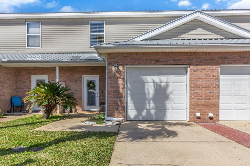 Experience the best of coastal living in this delightful 3-bedroom, 2.5-bathroom townhome, built in 2002 and ideally located just minutes from the beach, bay, HarborWalk Village, and more. With a sturdy brick and vinyl exterior, metal roof, and an attached one-car garage, this home offers both durability and convenience.The spacious Main Living Area is perfect for relaxation and entertaining guests.Modern Kitchen: Equipped with stainless steel appliances, ample cabinet space, a pantry, and a generous breakfast bar overlooking the living and dining areas for seamless hosting.First floor includes a half bath and two additional storage closets for your convenience. The second floor highlights include a primary bedroom with dual