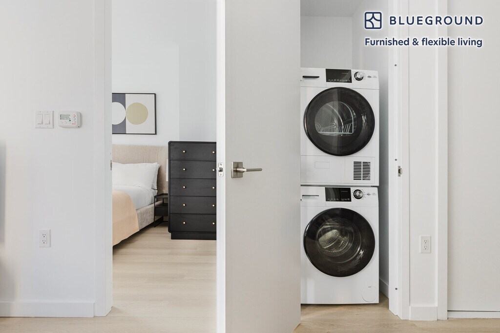 Feel at home wherever you choose to live with Blueground. You’ll love this sophisticated Downtown Brooklyn furnished one bedroom apartment with its modern decor, fully equipped kitchen, and roomy living room. Ideally located, you’re close to all the best that New York has to offer! (ID #NYC2124) The advertised rate of $3,690/month is the lowest available price, based on a 1 month(s) and 18 day(s) stay with a move-in date of November 25, 2025. If you’re looking for a 1-year stay, the rate is $5,320/month. Rates vary depending on the duration of stay, season, and other parameters. For exact pricing and additional pricing components, please visit our website and enter your desired move-in and move-out dates. The rate is applicable when billed upfront; it can be higher if billed in multiple payments. Brokers are welcome to reach out. Were you looking for an unfurnished lease? Try Blueground instead and upgrade from unfurnished to furnished living: - Furnished at rates comparable to unfurnished - No setup or furniture costs - save thousands - Move-in ready - save time, just bring your suitcase Designed with you in mind As with any Blueground apartment, you’ll find a thoughtfully designed space complete with beautiful furniture and a fully equipped kitchen in this one bedroom property. And, thanks to our superior quality mattresses, luxury linens, and towels, you can relax knowing you’ll always feel comfortably at home. When you’re ready for some fun, you can take in the New York vibes or bring the entertainment to you with the premium wireless speaker or smart TV. This apartment also offers in-apartment laundry. Sleeping arrangements Queen Bed, 63in/160cm Amenities Building amenities unique to this one bedroom apartment include an on-site: - Doorman - Dryer - Elevator - Washing machine - Lounge Arrival and ongoing support The entire apartment is yours to enjoy! Throughout your stay, you’ll have access to our Client Experience team through the Blueground App. You can schedule additional cleanings, submit maintenance requests, and view our neighborhood recommendations with just a few taps. We’ll share all details upon confirmation of your stay. Ideally Located This furnished apartment is located in Downtown Brooklyn, one of the borough's most sought-after neighborhoods. The bustling area is characterized by both office towers and residential buildings, so there's a wide variety of restaurants serving cuisine from all over the world, night and day. Downtown Brooklyn is also the site of the Brooklyn Academy of Music, a cutting edge arts complex, and it's an easy walk to the foot of the famous Brooklyn Bridge. The neighborhood is served by several subway lines and bus routes, making it easy to get to Manhattan and the city's other boroughs. Other things to note Building amenities may have an extra cost. This Blueground apartment has flexible lease options, allowing you to book it for one month, a year, or more. Brokes CYOF. We take great pride in ensuring every photo displayed is shot in our own units with our actual furnishings. That said, we regularly refresh our decor and furniture arrangement, which may differ from what’s pictured. [GO]