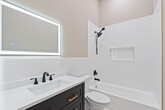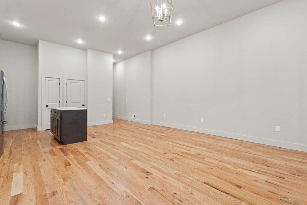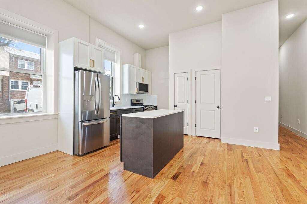 Welcome to a masterpiece of contemporary design. This gut-renovated residence offers approximately 1,300 square feet of pristine, thoughtfully curated living space featuring three spacious bedrooms, two modern bathrooms. Inside you'll experience a sense of grandeur rarely found in urban living, where an expansive open-concept living and dining area is anchored by soaring 12-foot ceilings, creating an airy, loft-like atmosphere. The entire home is bathed in natural light and finished with rich hardwood floors, chic recessed lighting, and the ultimate urban convenience of in-unit laundry. The heart of the home is a chef’s dream kitchen, designed for both high-end entertaining and daily functionality. It features an elegant center island topped with premium quartz counters and a full suite of brand-new stainless steel appliances, including a built-in microwave, dishwasher, and a French door refrigerator with an integrated water dispenser. This commitment to modern luxury extends into the spa-inspired bathrooms, which boast minimalist fixtures and sleek LED-lighted mirrors. Every inch of this home has been reimagined to provide a sophisticated sanctuary with a flexible three-bedroom layout in one of Jersey City’s most exciting neighborhoods. Located in the vibrant West Side, this property puts you at the center of a rapidly evolving community just steps from local favorites like Treehouse Coffee Shop and the sprawling 273-acre Lincoln Park. Commuting is effortless, with the West Side Avenue Hudson-Bergen Light Rail station nearby providing direct access to Exchange Place and Hoboken. Frequent NJ Transit bus lines to Journal Square and Manhattan stop right outside your door, while easy access to Route 440 and the NJ Turnpike makes this the perfect hub for any lifestyle. Experience the ideal blend of designer luxury and unmatched urban connectivity at 150 West Side Ave.