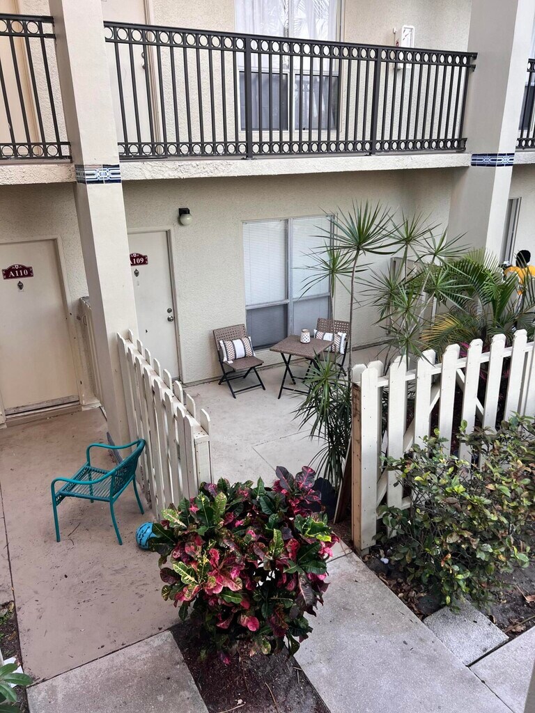 Cozy and bright second floor condo 1bedroom 1bath-Large and spacious with separate dinning area. Corner unit.Laminate floors. Updated kitchen- Beautiful view to the pool from Balcony. Laundry Facilities. Great community close to I-95. Palm Beach Outlets. No pets allowed by Association. and WATER is included in the rent !