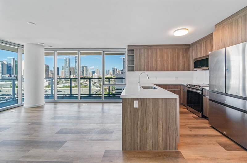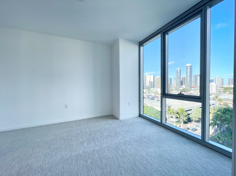 Welcome to The Park on Keeaumoku! Make this brand new, one bedroom, one bath unit your new home. The Park on Keeaumoku welcomed its first residents in September 2025 and this is your opportunity to be the first person to live in this immaculate one bedroom unit with split AC in both the living room and bedroom, luxry vinyl plank flooring in the living room and comfortable carpet in the bedroom. Kitchen features include: Quartz countertops, contemporary hardware, luxury vinyl plank flooring, stainless steel appliances and modern plumbing fixtures. Floor to ceiling windows allow the natural light into the unit and enjoy the spacious 70 sq ft lanai, offering city and ocean views. Building amenities include: fitness center, co-working space, club rooms, infinity pool, suana, movie theater, and private BBQ pavilions. Ideal location, minutes away from Ala Moana Center, Ward Village, Walmart and various local dining options, retail and entertainment. Tenant responsible for electricity and internet. Renters insurance required. Sorry, no pets or smoking allowed.