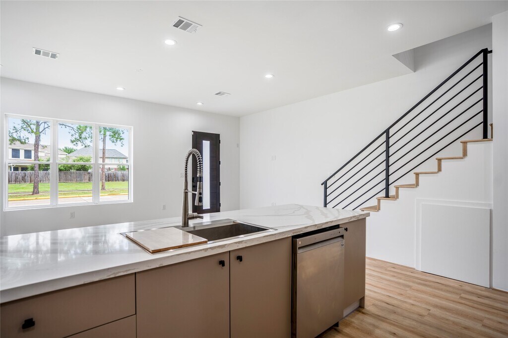 This newly built,free-standing 3-story homes offer a fresh,modern feel with convenience and sophistication. The kitchen,featuring a large quartz island,opens to the living room,creating a comfortable and airy atmosphere. The first floor is enhanced with abundant cabinets and built-in shelving,adding a designer touch. Moving up the modern staircase to the second floor,you'll find a spacious Primary Suite and a luxurious Primary bath that feels like a five-star retreat. It includes double sinks,a large walk-in closet,a deep soaking tub,and an open-concept shower. The secondary bedrooms share a Hollywood bath,and there's a conveniently placed utility closet. On the third floor,there's a large open space perfect for entertaining as a game room. It also features a full bath and a large walk-in closet,making it an ideal private bedroom retreat for some. The location is perfect,with easy access to the Westpark Tollway,Westheimer,and I-10. Schedule your private showing! MLS# 80822392